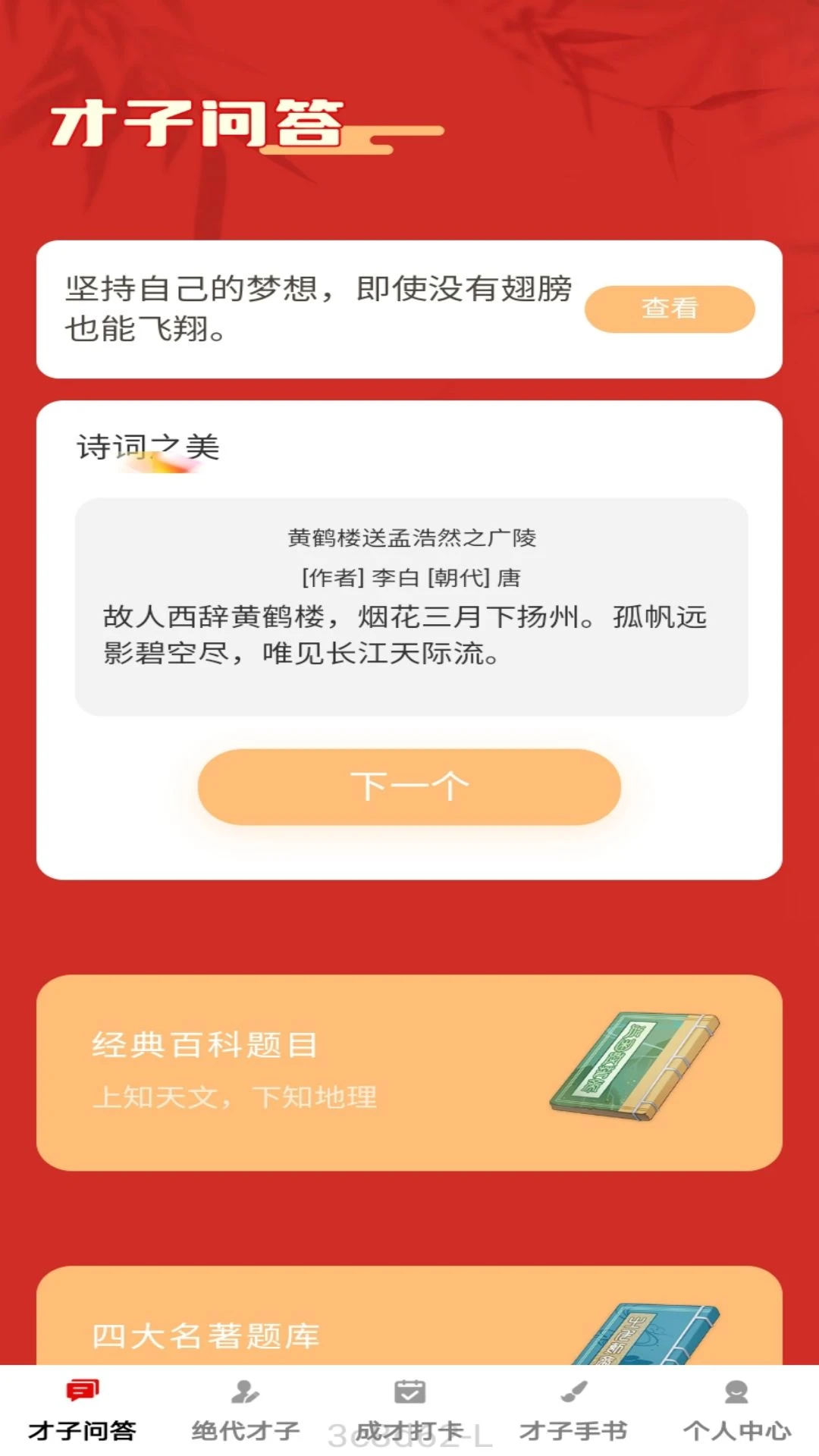 才子问答板块覆盖文学、历史、科学等多元领域,通过趣味答题形式激发学习兴趣绝代才子专栏每日推送古今中外名人事迹,以故事化形式传递智慧与经验