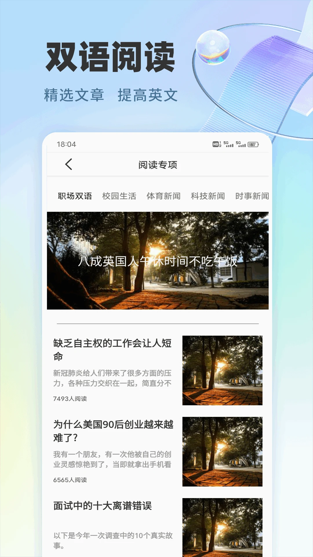 真人发音示范:所有例句和文章均由专业外教录制,学习纯正发音