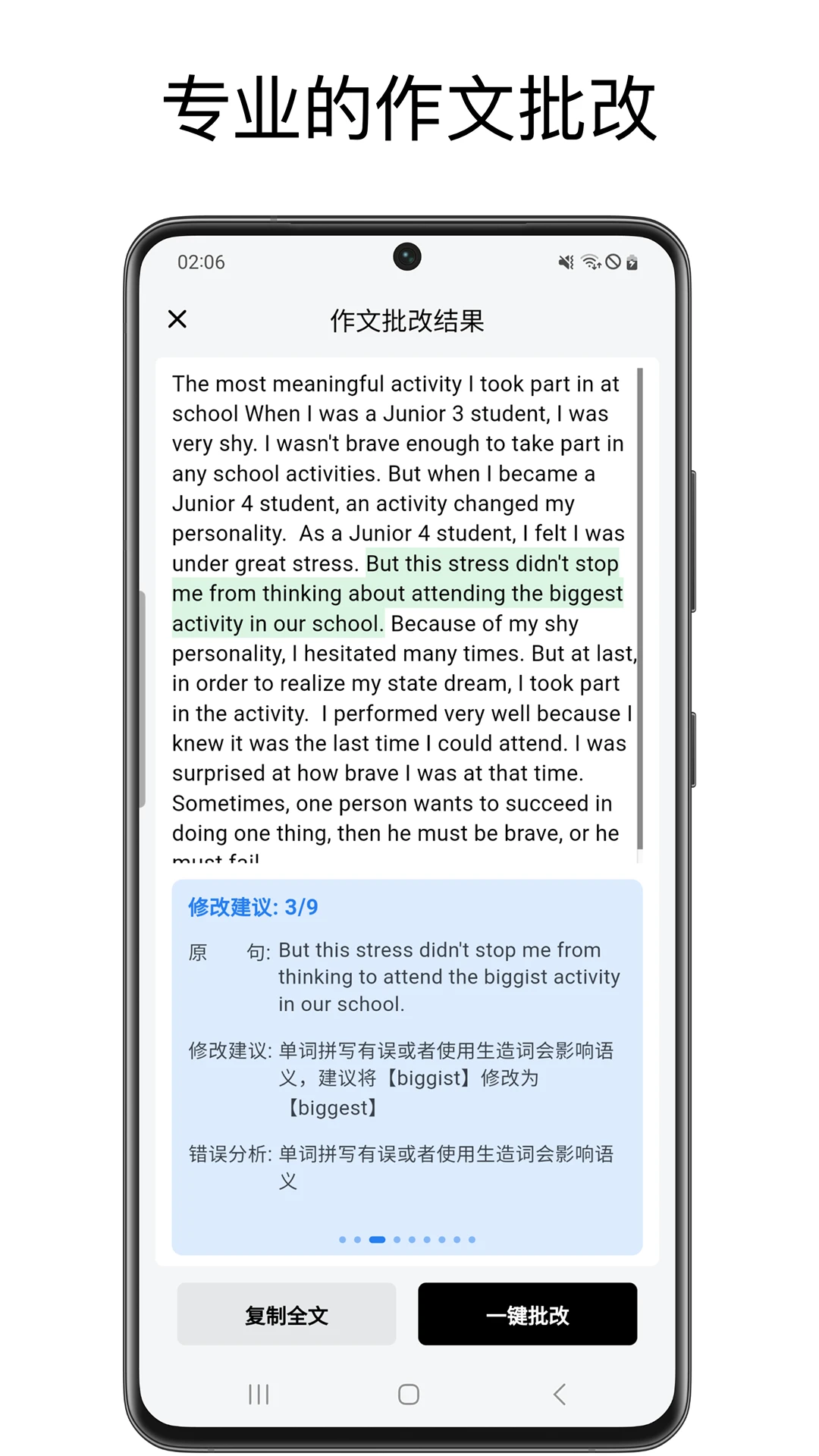 生成详细批改报告,包含错误标注和改进建议