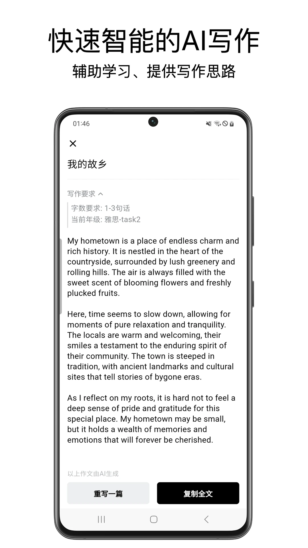 提供英语作文生成功能,辅助学生拓展写作思路