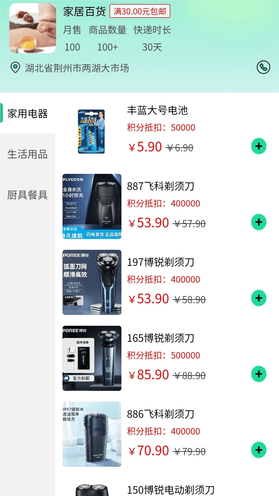 “购物”板块:大量生活用品、家居数码等商品供大家选购,平台所有消费都可以使用积分抵扣。