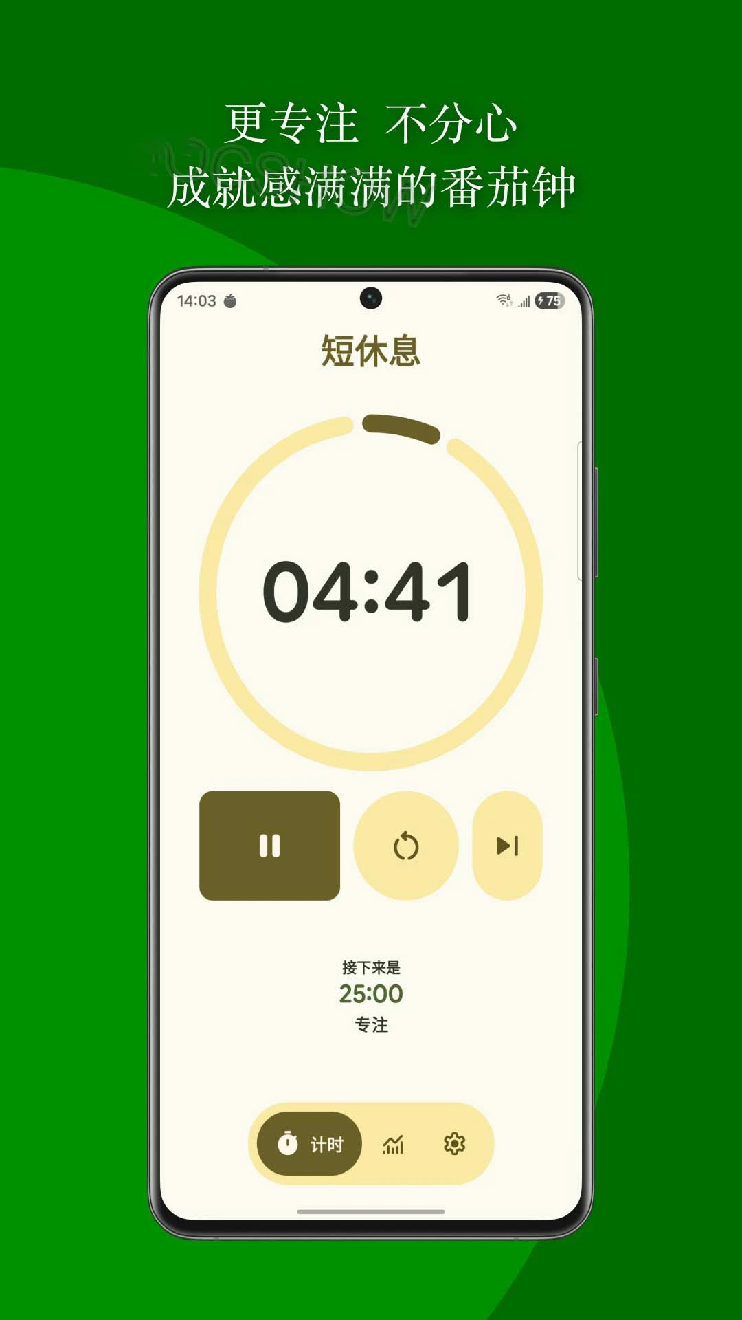 番茄时间管理App是一款专为提高时间利用效率、培养自律习惯和改善拖延症而设计的极简风格工具。基于经典的番茄工作法原理,这款App通过科学的25分钟专注+5分钟休息循环机制,帮助用户高效完成工作学习任务。其精美的界面设计和专业的功能设置,既能满足基础计时需求,又提供了丰富的个性化选项,让时间管理变得简单而有趣。无论是学生备考、职场人士工作,还是自由职业者规划日程,都能通过这款App获得专注力提升和时间管理能力的显著进步。