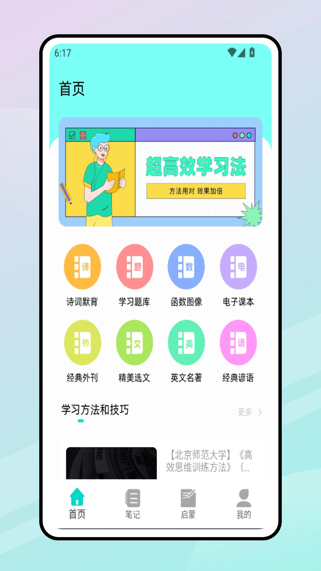 一款专为学生设计的综合性学习应用,提供丰富多样的学习资源和工具。应用涵盖启蒙教育、笔记整理、在线自习、习惯培养等功能,助力学生全面发展。启蒙板块通过绘本阅读、音频欣赏、诗词鉴赏等激发学习兴趣;笔记功能帮助学生高效整理知识;在线自习和习惯培养则促进自主学习。此外,应用还提供数学作业助手,包括线性函数、幂函数、指数函数等,为学生解决数学难题提供支持。《洋葱课堂》致力于让学习变得更简单、更有趣。