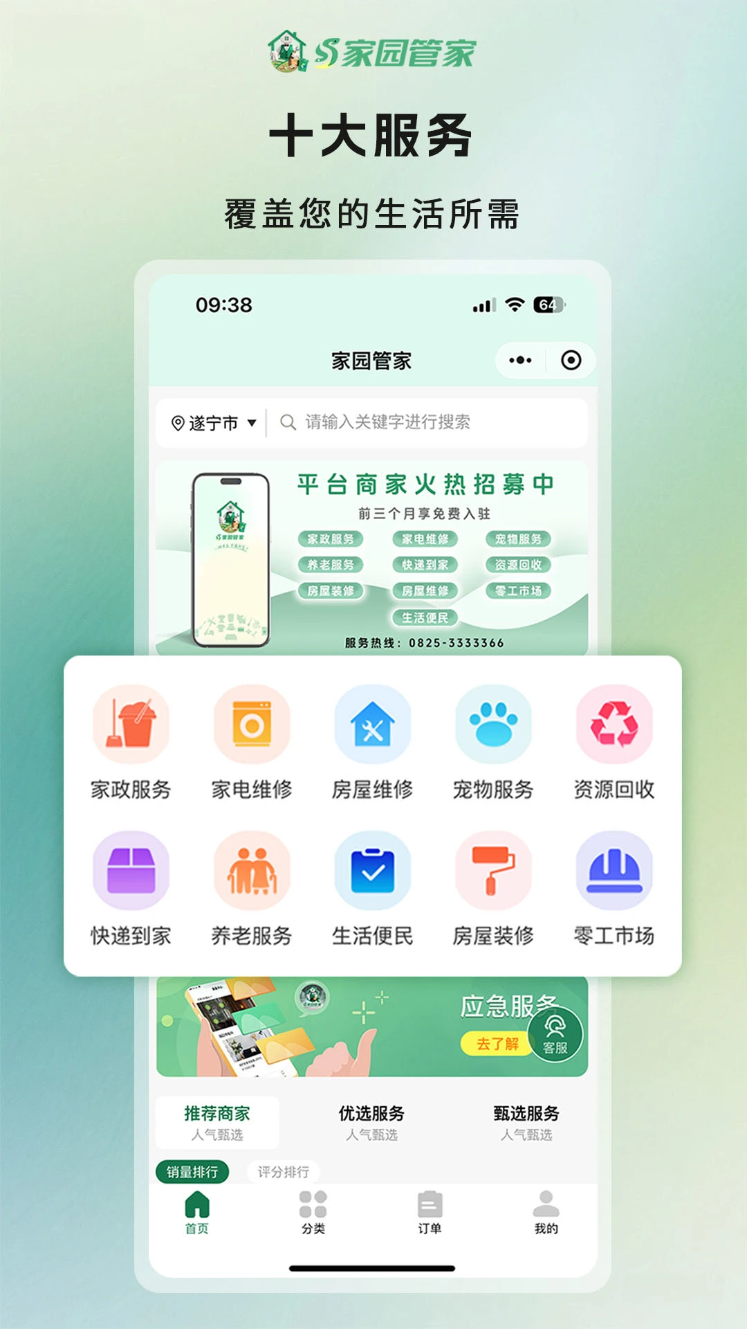 专业提供家政,维修,养老,房屋装修,资源回收等便民服务。
