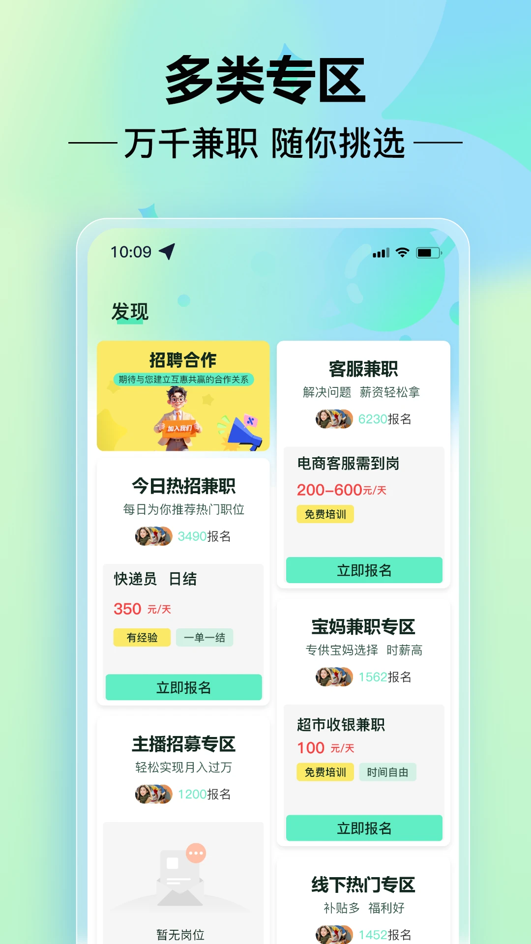 支持多条件筛选功能,用户可根据时间、地点、薪资等快速匹配适合自己的兼职。