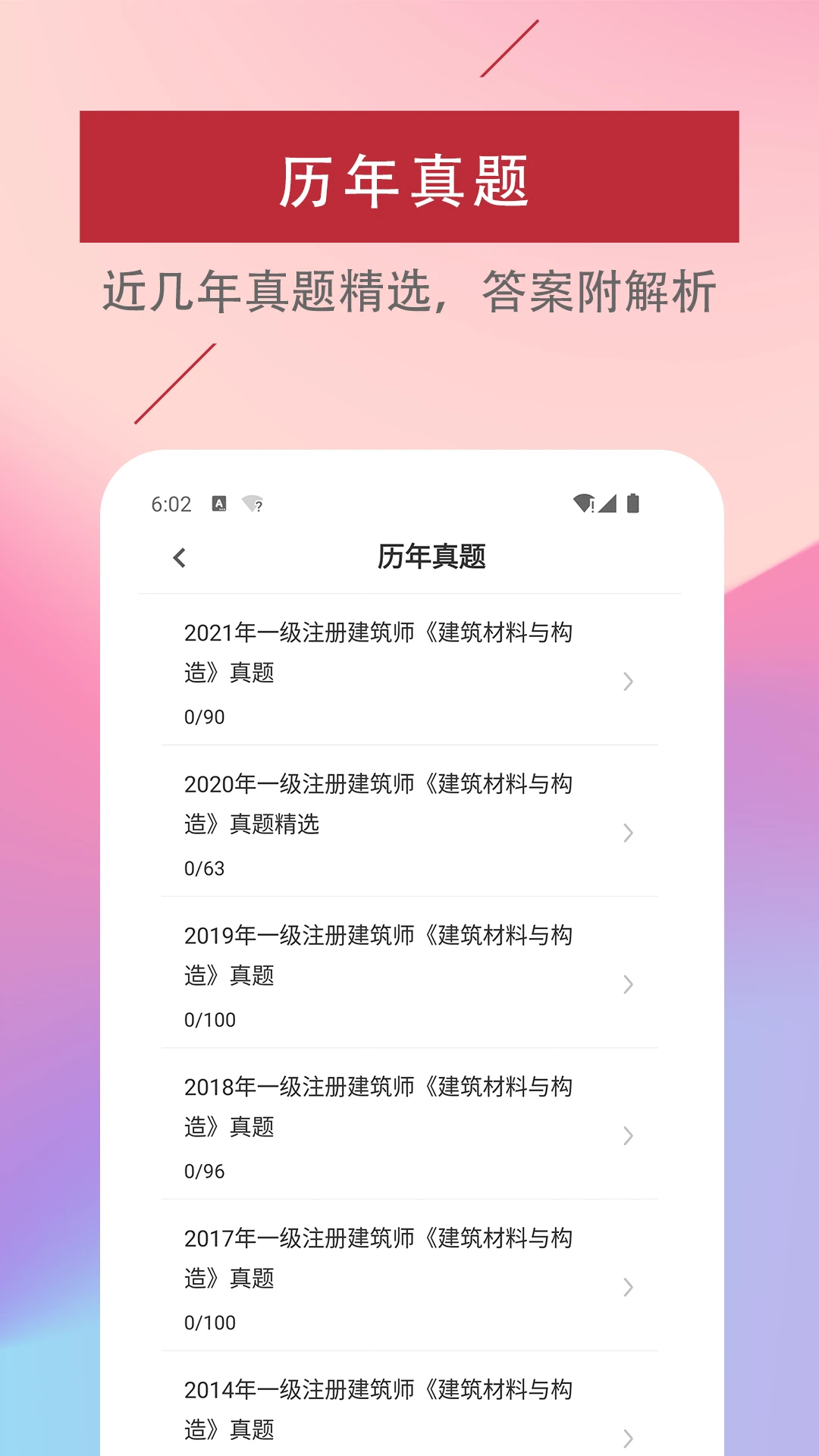 全面覆盖:包含建筑设计、建筑结构等五大核心科目,覆盖考试全部内容。权威资料:整合历年真题和押题密卷,确保练习内容的权威性和准确性。