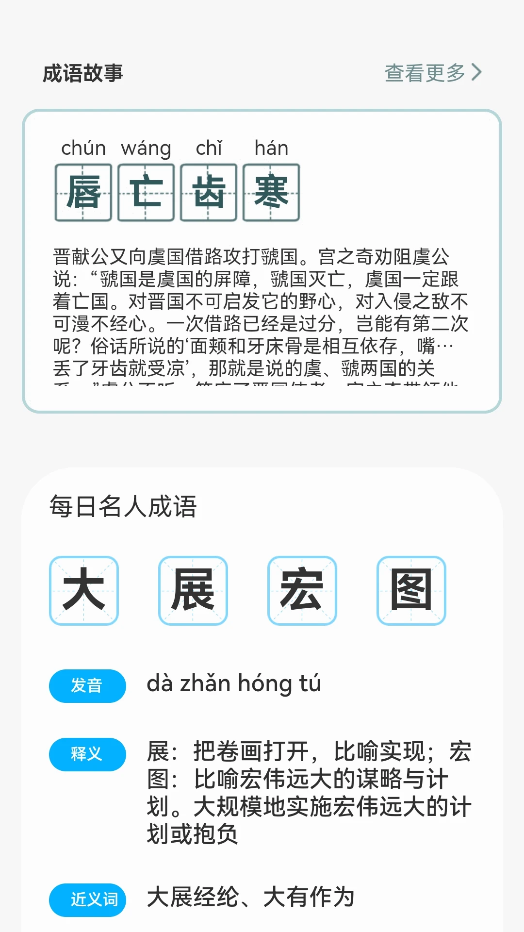 支持成语发音功能,帮助用户纠正读音并提升语言表达能力。