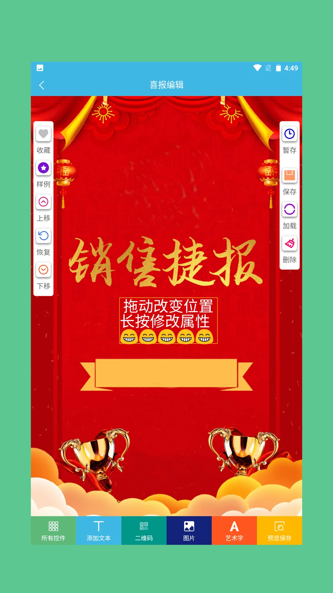 喜报模板是一款既简单又专业的能自己制作喜报设计制作的应用,支持添加文本、二维码、图片、艺术字,可以自由搭配出自己需要的效果。
