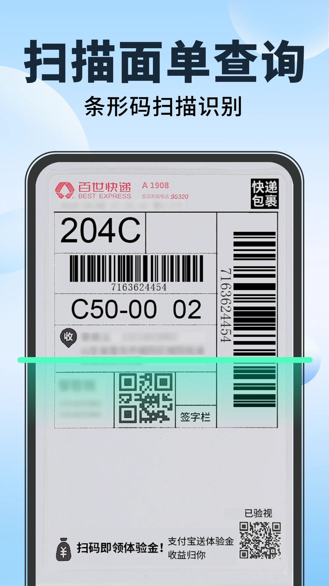 支持多种快递单号格式,包括条形码和二维码,兼容性极强。