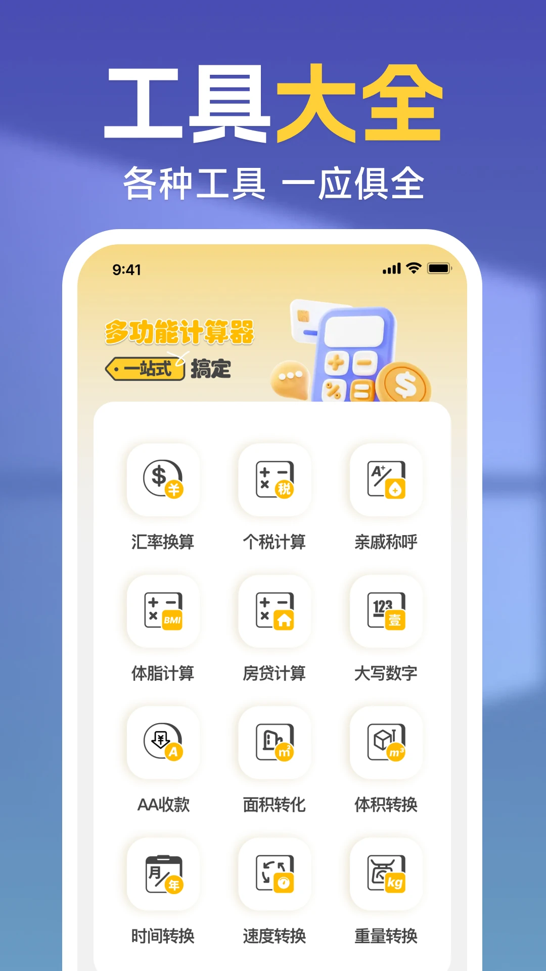 工具大全:涵盖汇率换算、个税计算、房贷计算、单位转换等众多实用工具,无论是生活琐事还是工作难题,都能解决。