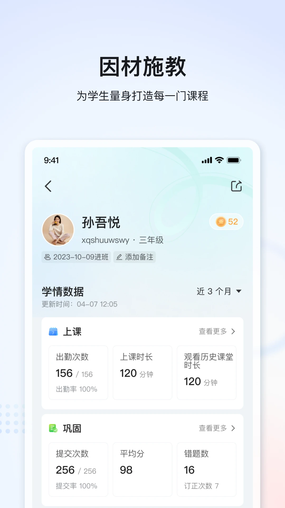 个性化学习路径:系统支持根据学生进度推荐学习内容,实现因材施教。