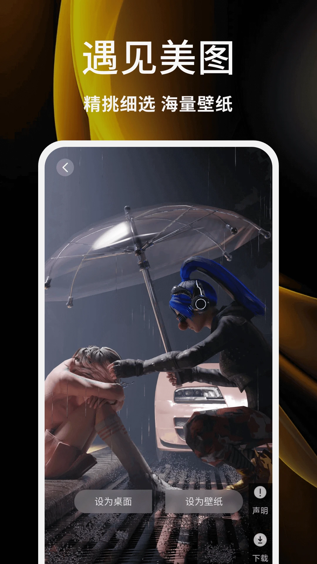海量主题壁纸库,涵盖动漫、风景、抽象等多种风格,每日更新最新热门壁纸。个性化头像编辑器,支持贴纸、文字、滤镜等创意工具,打造独特社交形象。