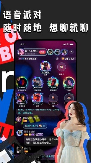 2、集语音聊天、声音交友、音乐陪伴为一体的语音交友互动平台;支持高音质语音传输,还原最真实的交流体验。