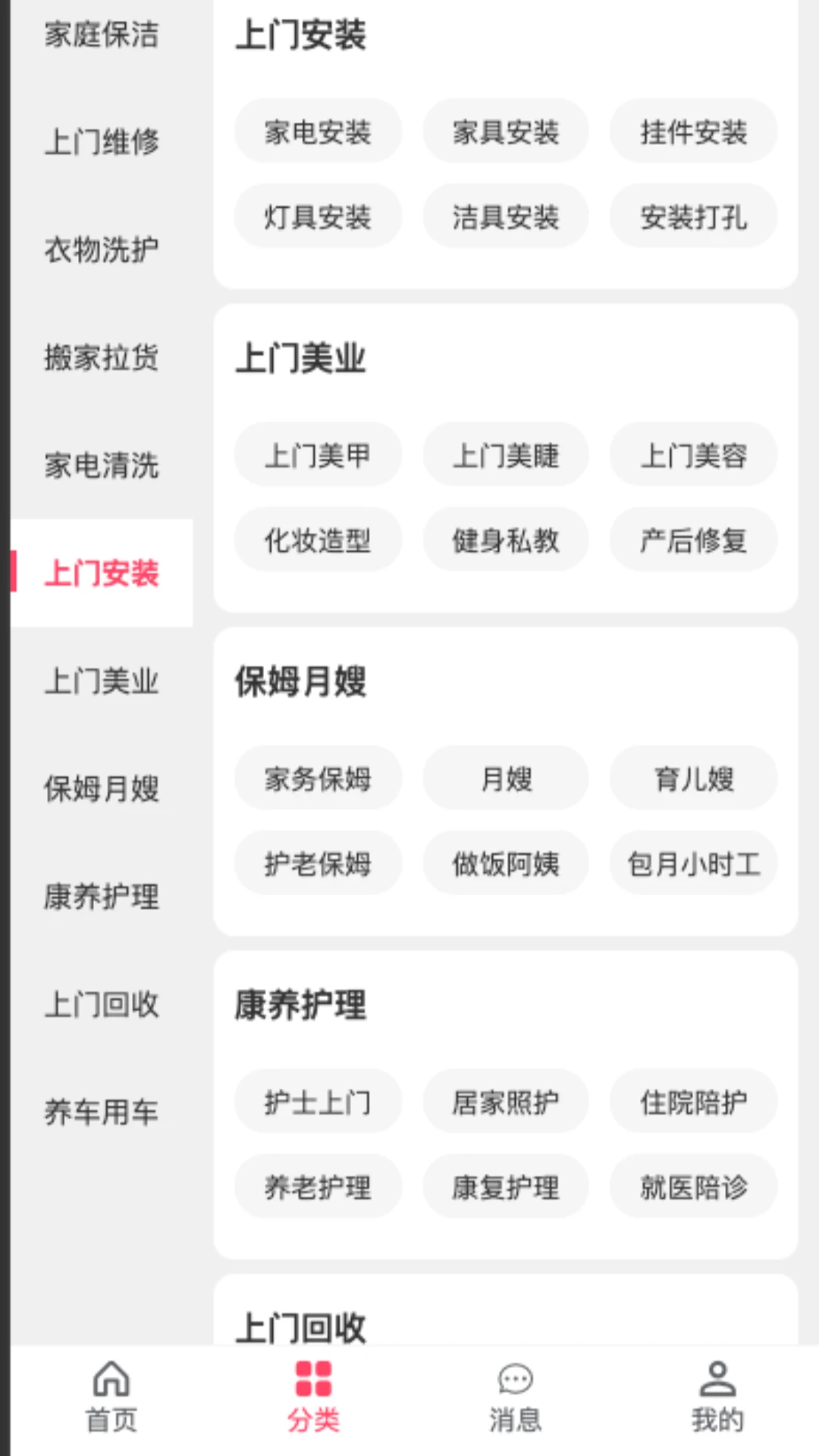 上门家政服务:涵盖日常家务打理、衣物洗涤、老人陪护、儿童看护等多样化家政需求。