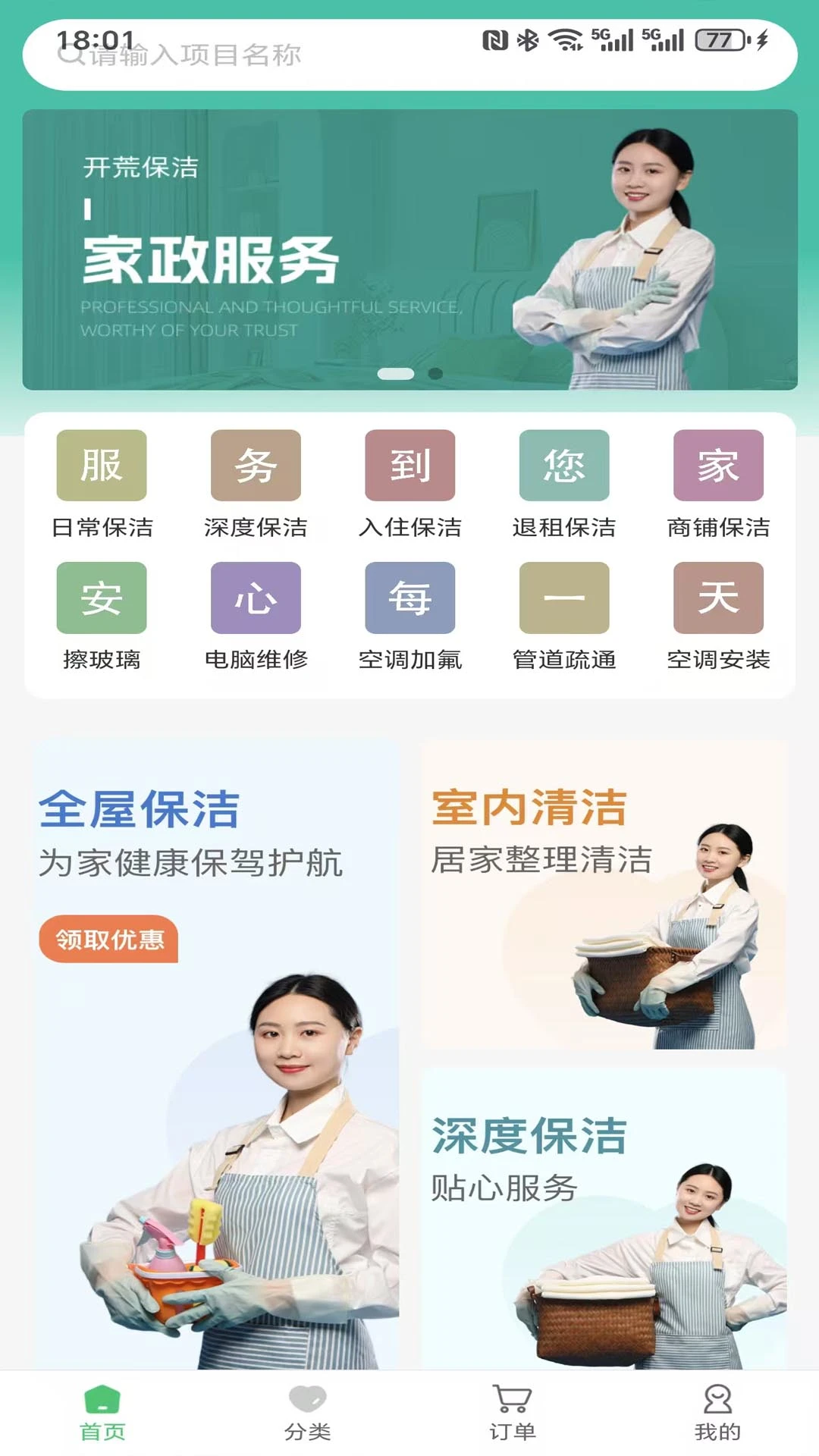 家政保洁:提供日常保洁、深度清洁、开荒保洁等全方位服务,满足不同场景需求