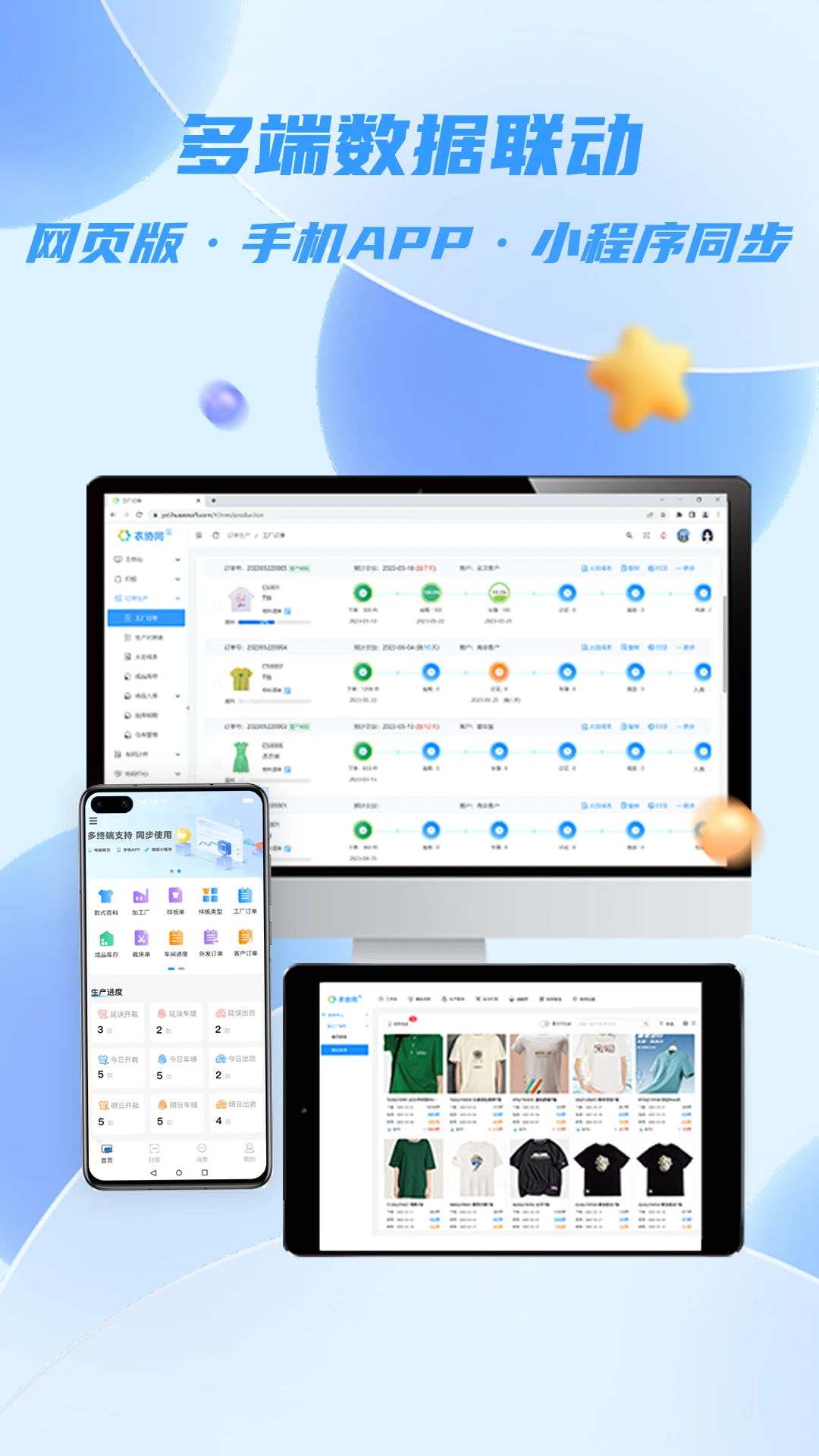 促进服装行业高质量、信息化、智能化发展,软件联动电脑端、手机app、微信小程序多方设备,满足不同的办公环境需求,为服装公司提供打板、下单生产、面辅料计算采购、进销存、车间裁床打菲报工、计件工资、财务对账等功能模块,内置加工厂协同、客户协同、面辅料协同等平台化运作工具,致力打造服装行业生态智慧平台。