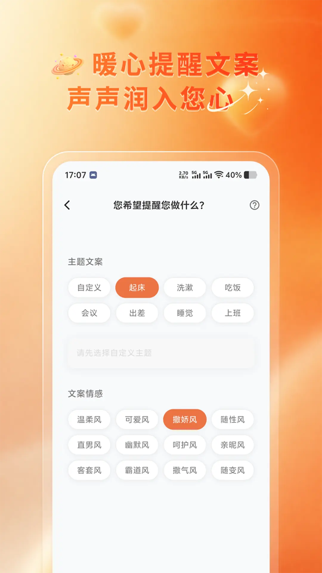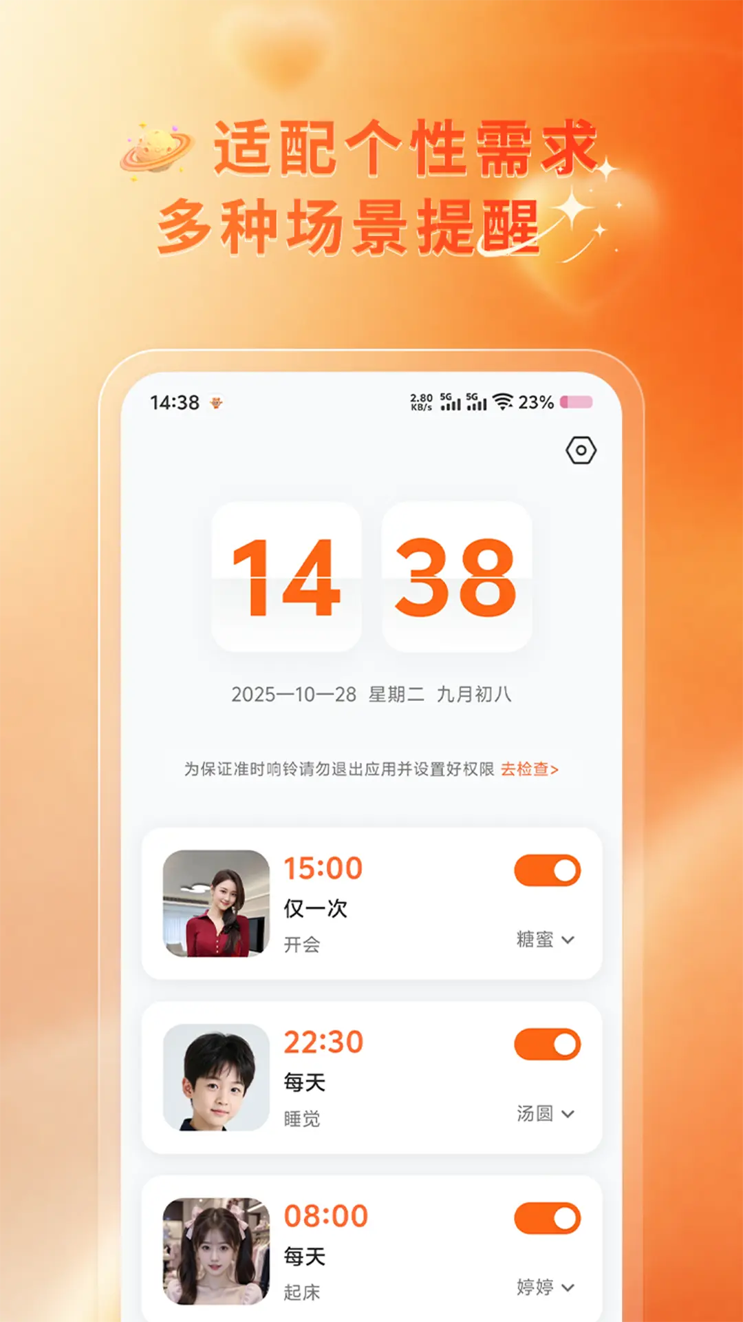 自定义叫醒文案,用户可自由编辑提醒内容,打造专属唤醒体验。