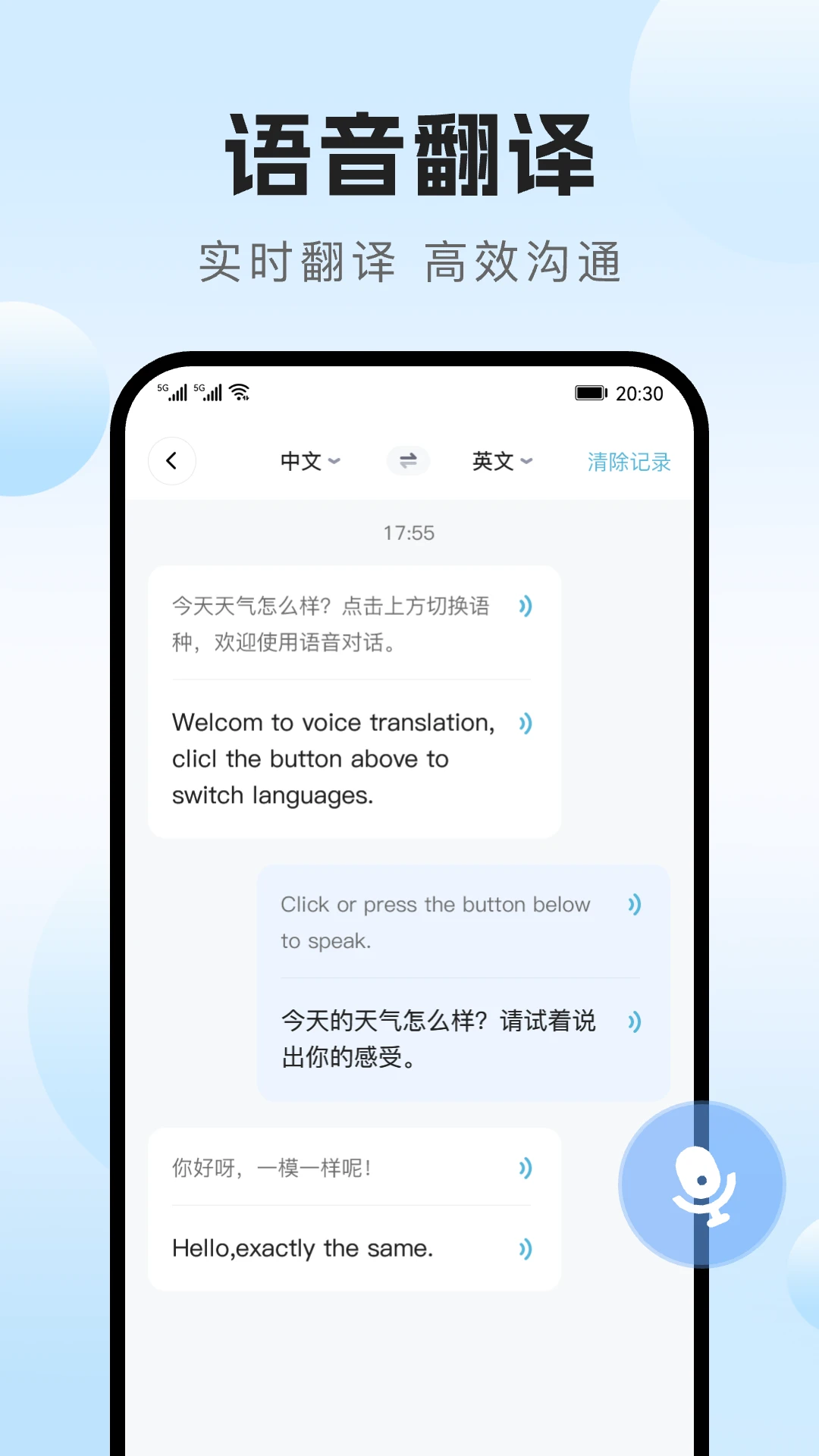 支持通过语音输入进行翻译,无需键盘输入,更加智能便捷。在紧急情况下或者说不便使用拍照功能时,语音翻译将成为您的得力助手。