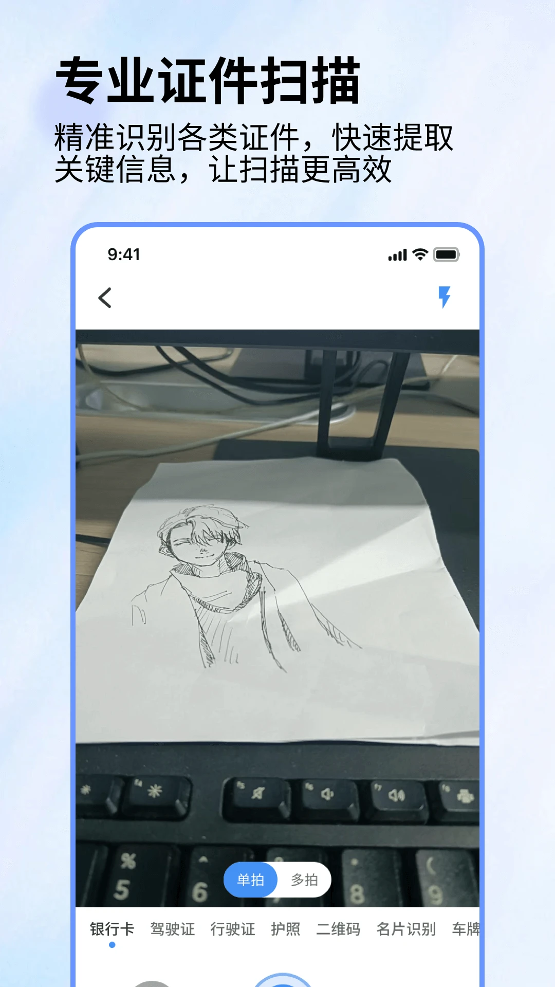 专业证件扫描模式针对身份证、银行卡等特殊尺寸文档进行优化,自动生成标准电子副本