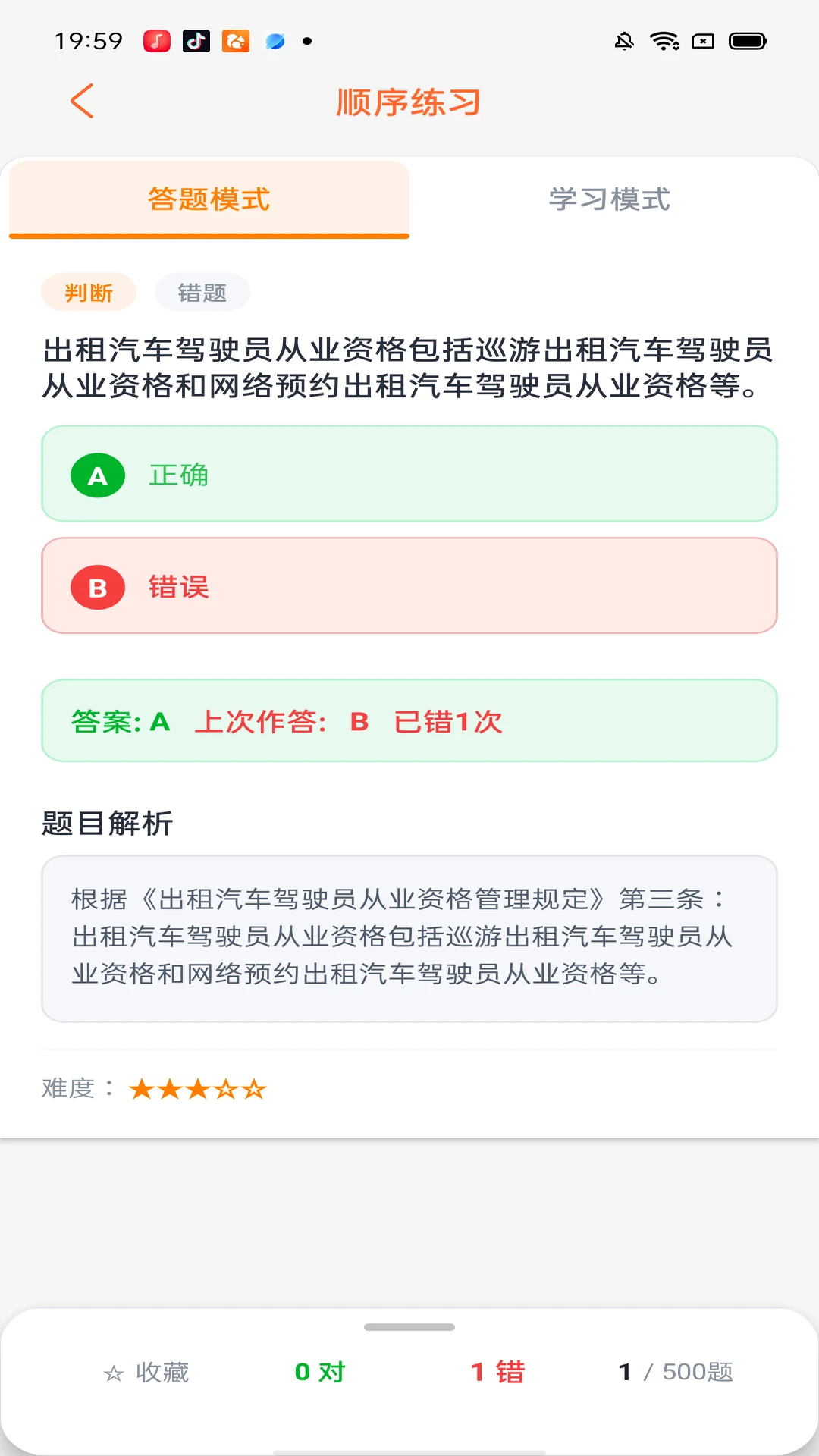 -多种练习模式:顺序练习、随机练习、错题专项、收藏复习