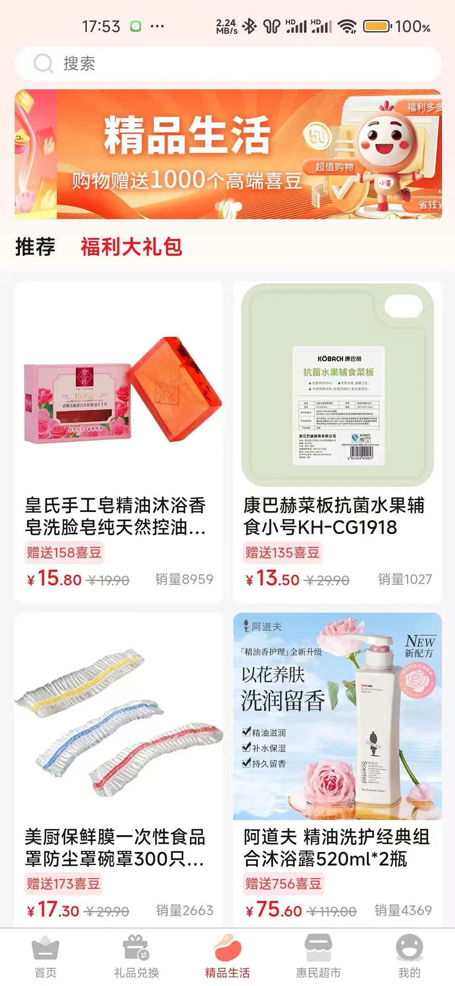 喜豆兑换商品:平台提供专属喜豆兑换专区,用户可用喜豆直接兑换心仪商品。