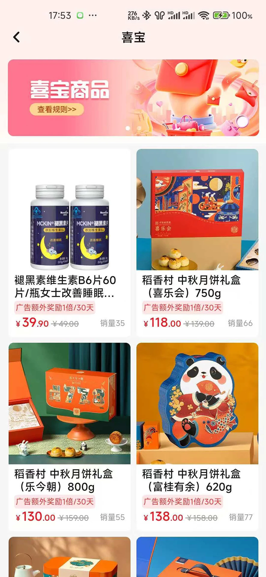 看广告赚喜豆:用户通过观看广告视频即可积累喜豆,轻松兑换商品或抵扣金额。
