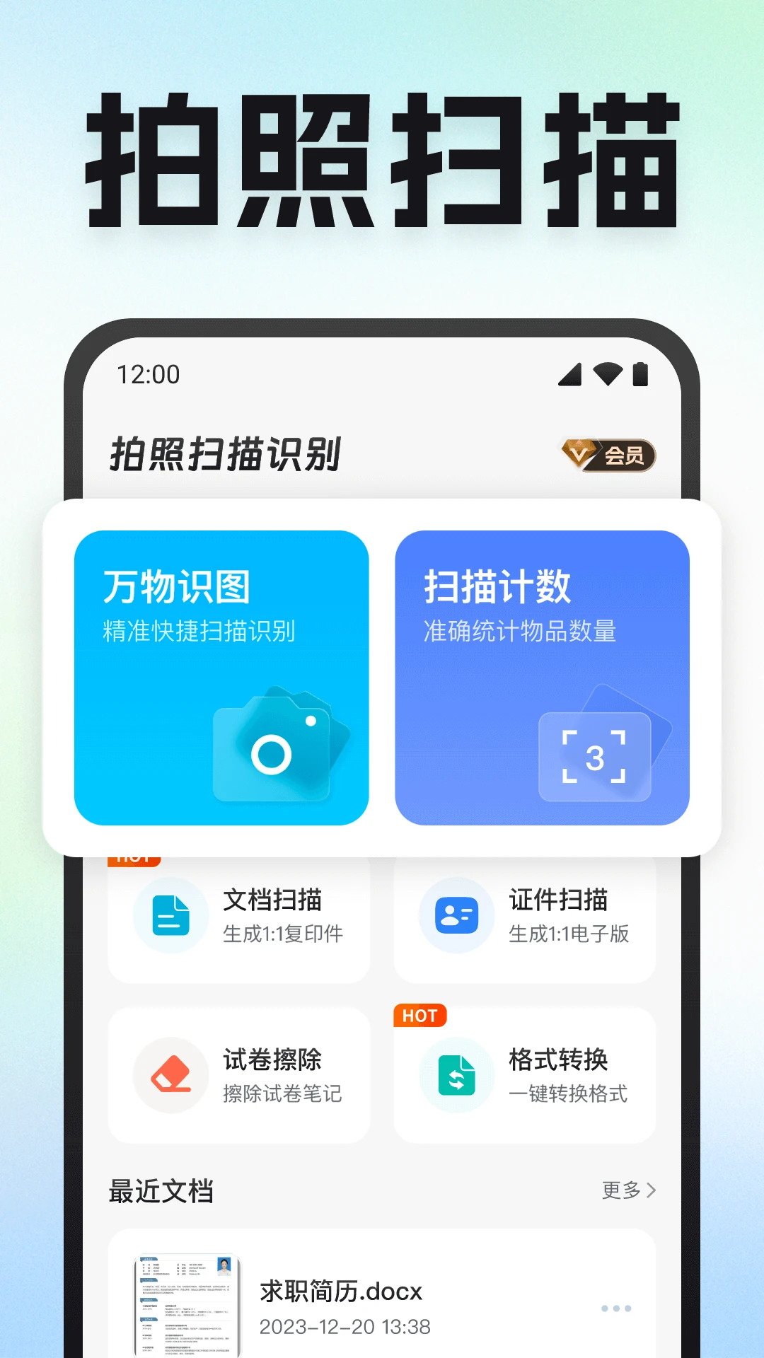 拍照扫描识别,您的办公学习助手,快速扫描精准识别,无论是复杂信息的快速识别,还是繁琐文档的高效处理,它都能为您提供强有力的支持,提升生活和工作的效率。