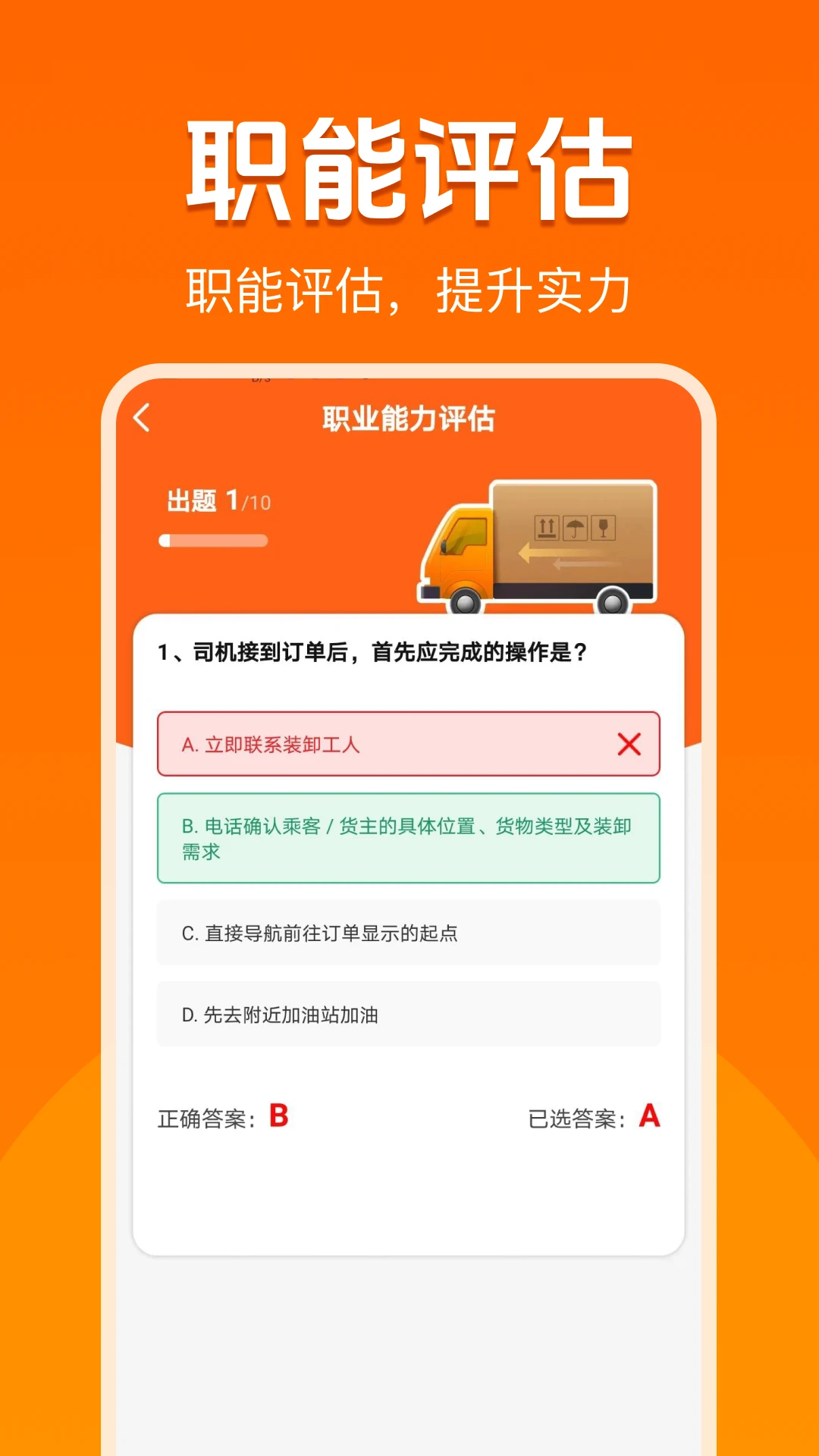职业能力评估功能,通过模拟考试提升司机的业务知识和技能。