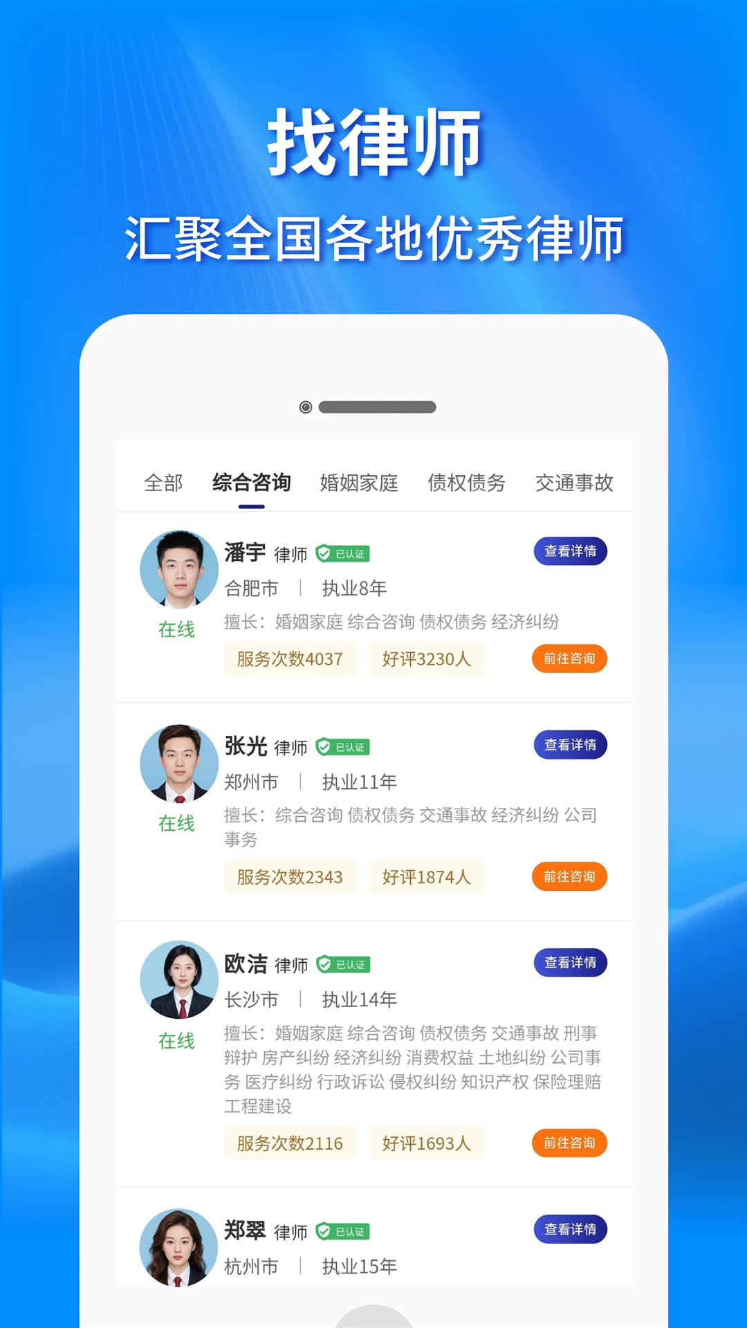 汇聚全国资深律师团队,确保法律服务的专业性和权威性。 操作简单便捷,用户无需复杂流程即可快速获取所需服务。 严格保护用户隐私,所有咨询内容及个人信息均加密处理。 响应速度快,平均30秒内匹配律师,5分钟内获得初步解答。 提供免费基础法律知识库,降低用户学习法律的门槛。 持续优化用户体验,根据反馈不断升级功能和服务质量。