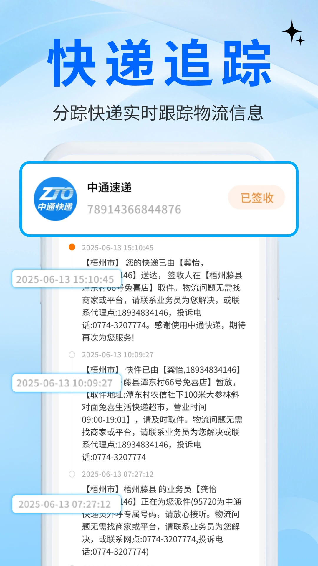 高效便捷:省去登录多个快递官网的麻烦,一键查询所有包裹。
