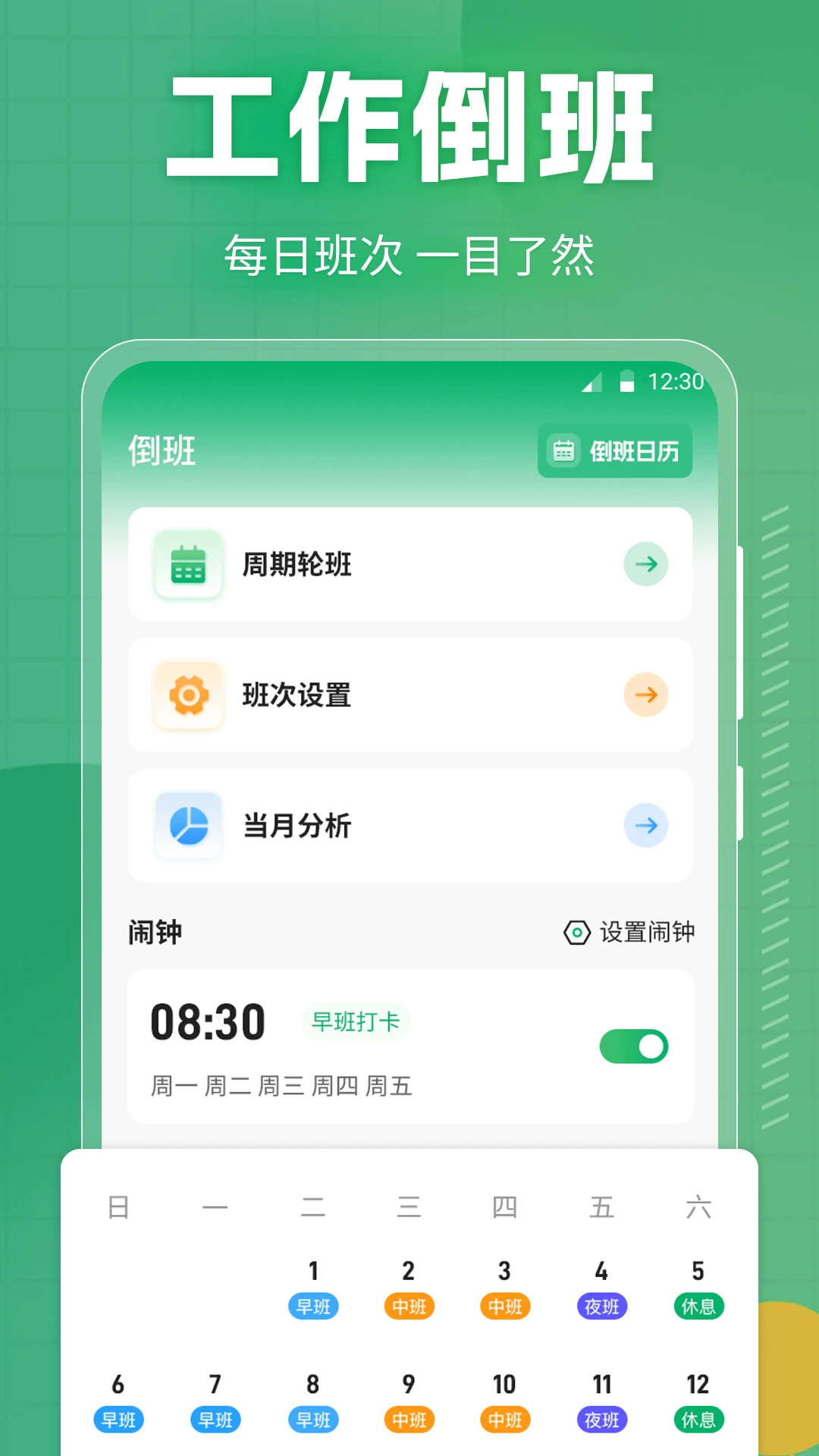 ·根据倒班排期或常规时间设定专属工作闹钟,准时提醒不误工。