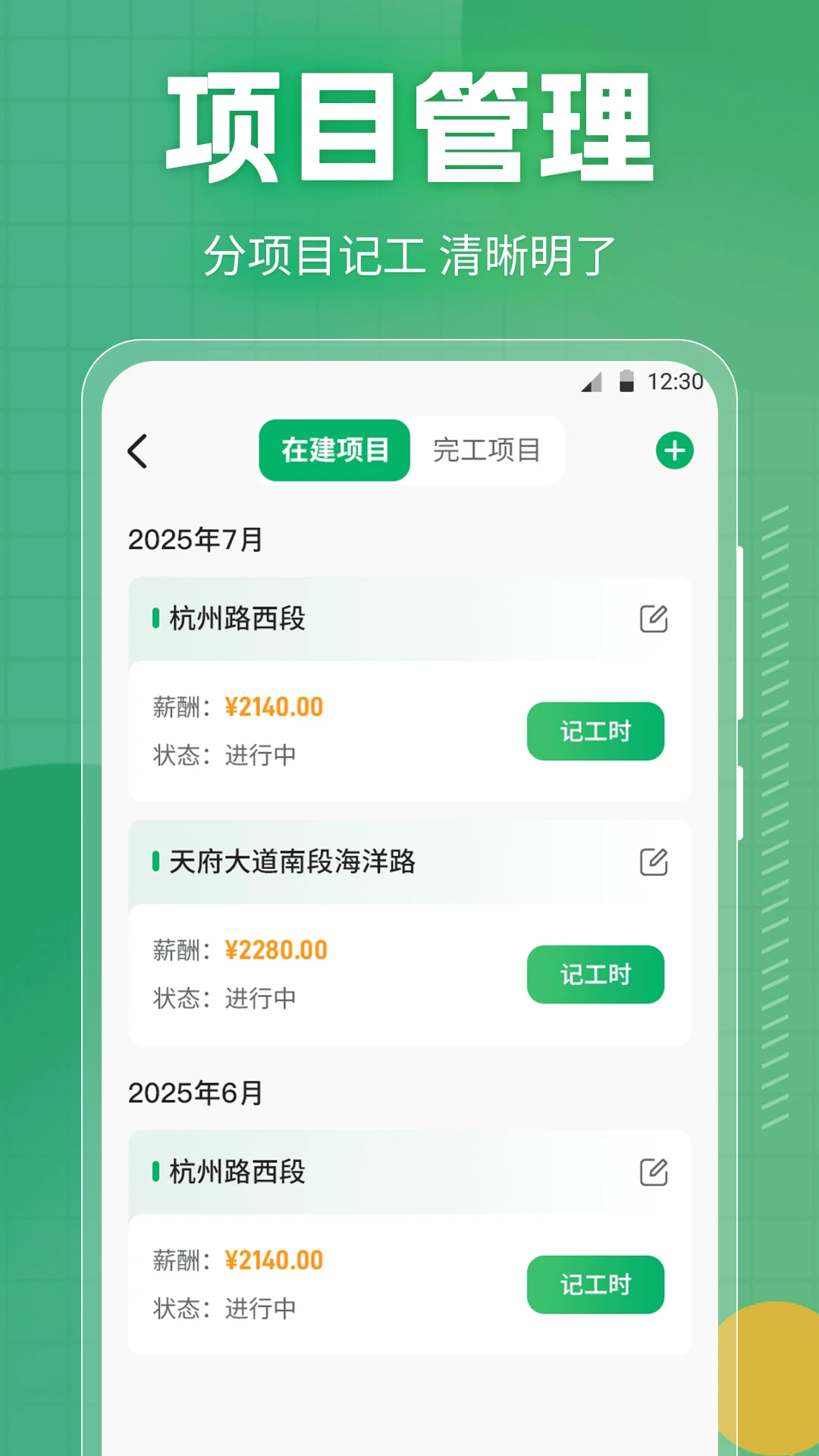 ·项目分组管理功能让用户轻松区分不同工地或工作内容,收入来源一目了然。