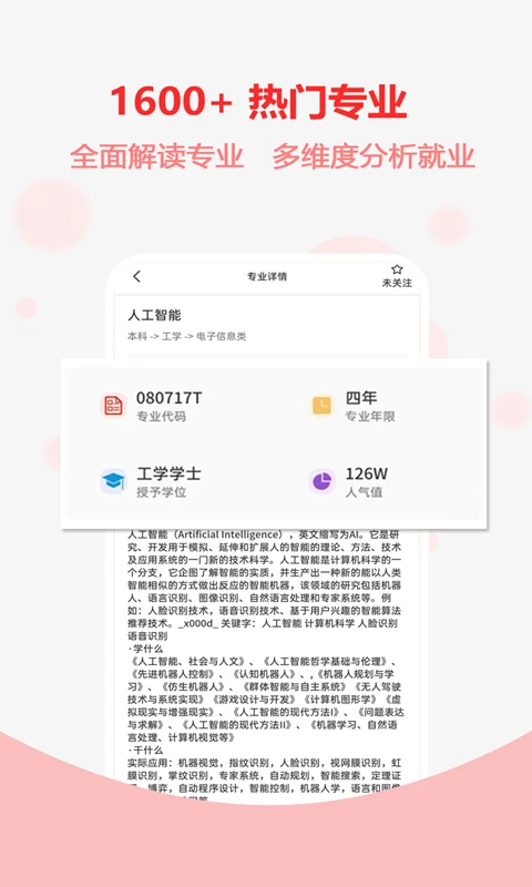 深入分析学生的兴趣类型、性格类型和能力优势,推荐适合学生报考的专业方向,提供专业培养目标、开设专业院校以及学长解说专业等内容。