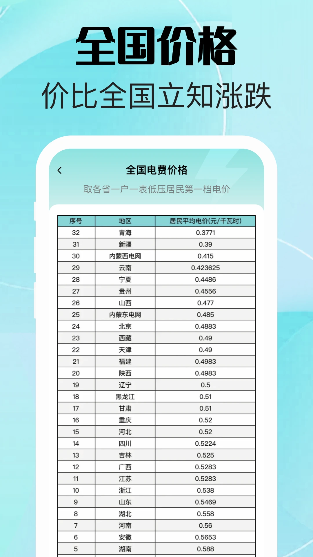 全国价格对比:支持查询全国各地的水电价格,方便用户进行费用对比。