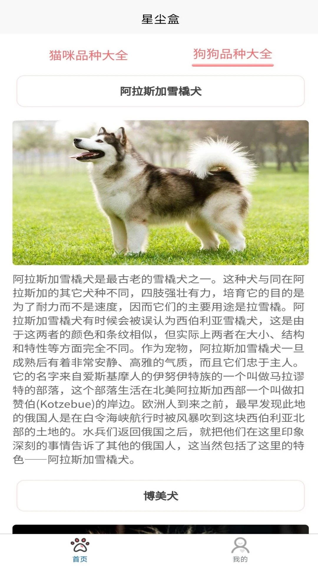 星尘盒是萌宠星球主题的宠物品种宝库。汇聚猫咪、狗狗多样品种,像阿拉斯加雪橇犬、布偶猫等,每类宠物都有详细档案。从起源故事到性格特点,从外观特征到养护要点,全方位解析。不管你是想了解不同宠物品种知识,还是想为养宠做功课,都能在这颗“萌宠星球”里,通过生动图文,轻松探索各类宠物的独特魅力,开启趣味养宠知识之旅。