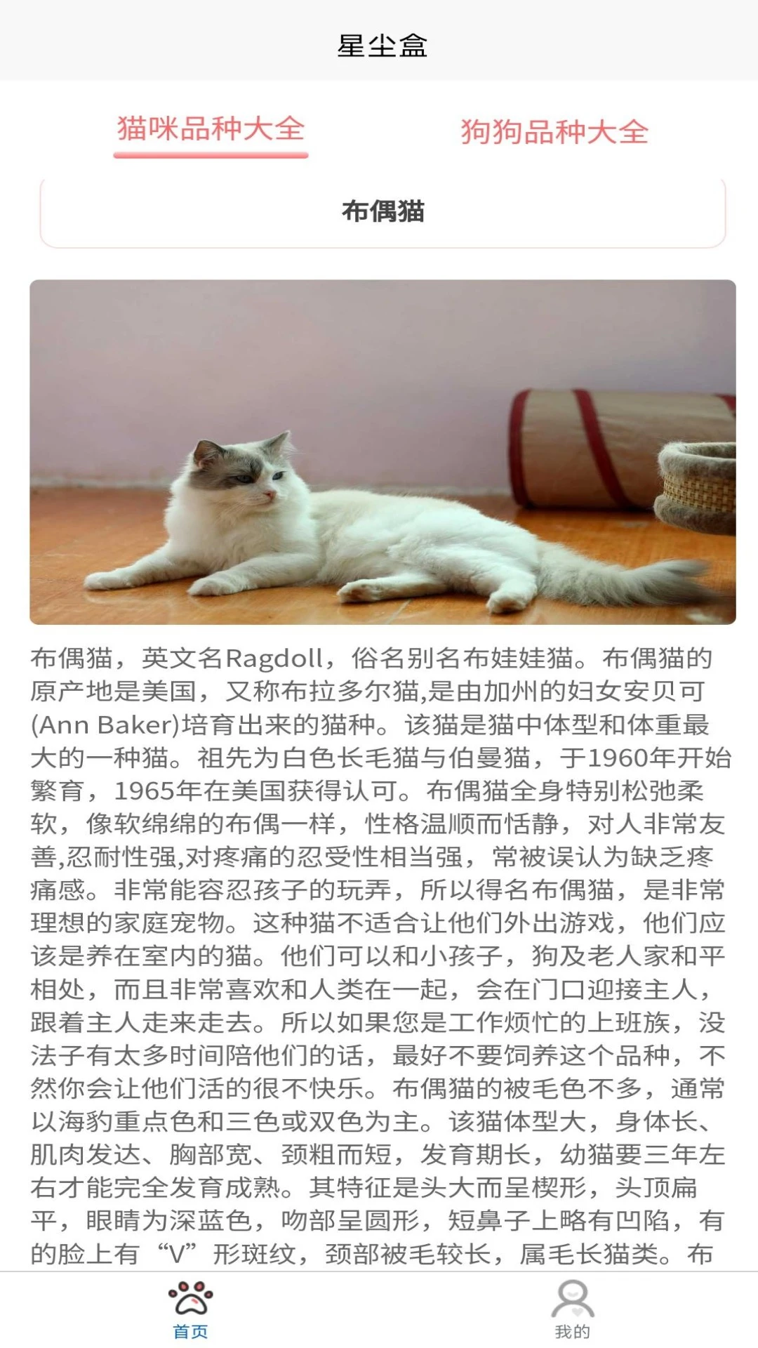 星尘盒提供超过200种宠物品种的详细档案,包括猫咪、狗狗等常见宠物。