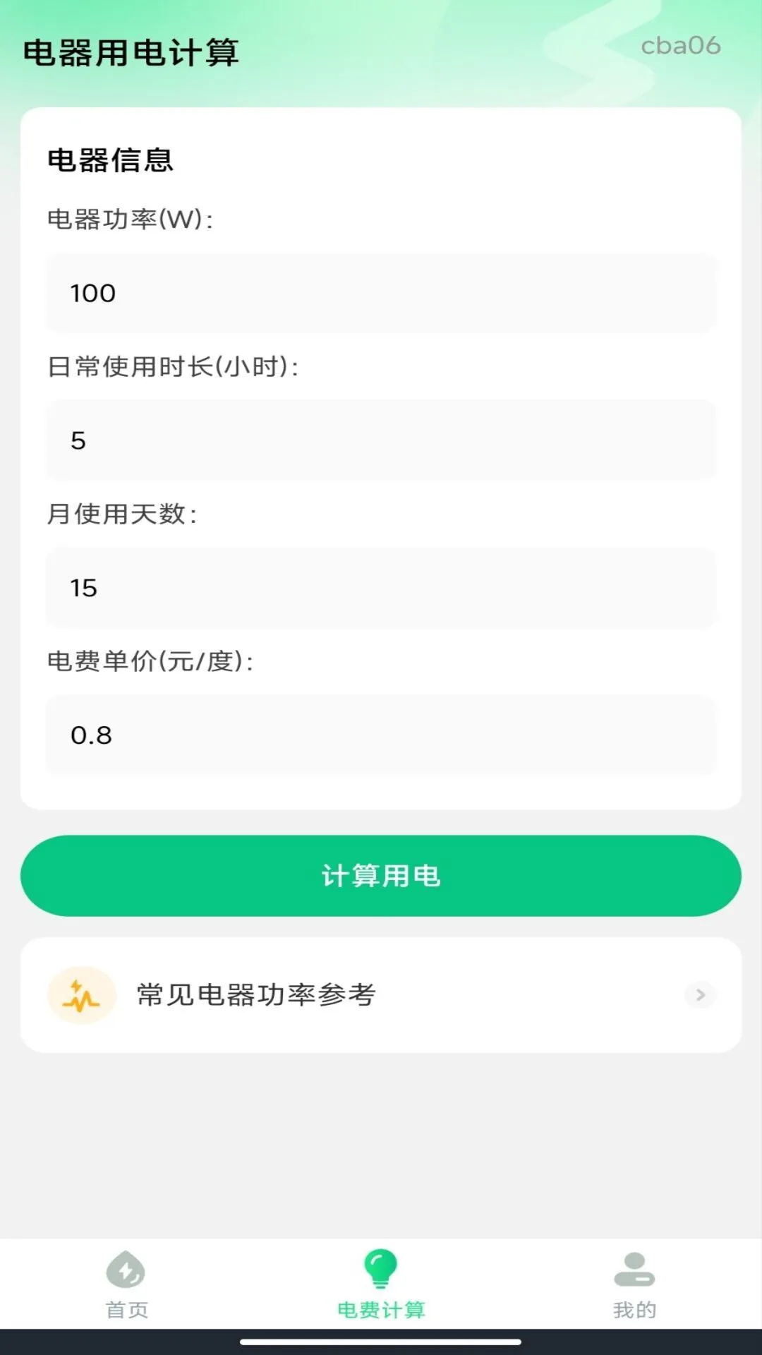电器能耗参考估算:内置常见电器功率参考信息,用户可根据个人使用习惯输入相关参数,快速获取该电器的理论能耗估算结果,辅助用电规划。