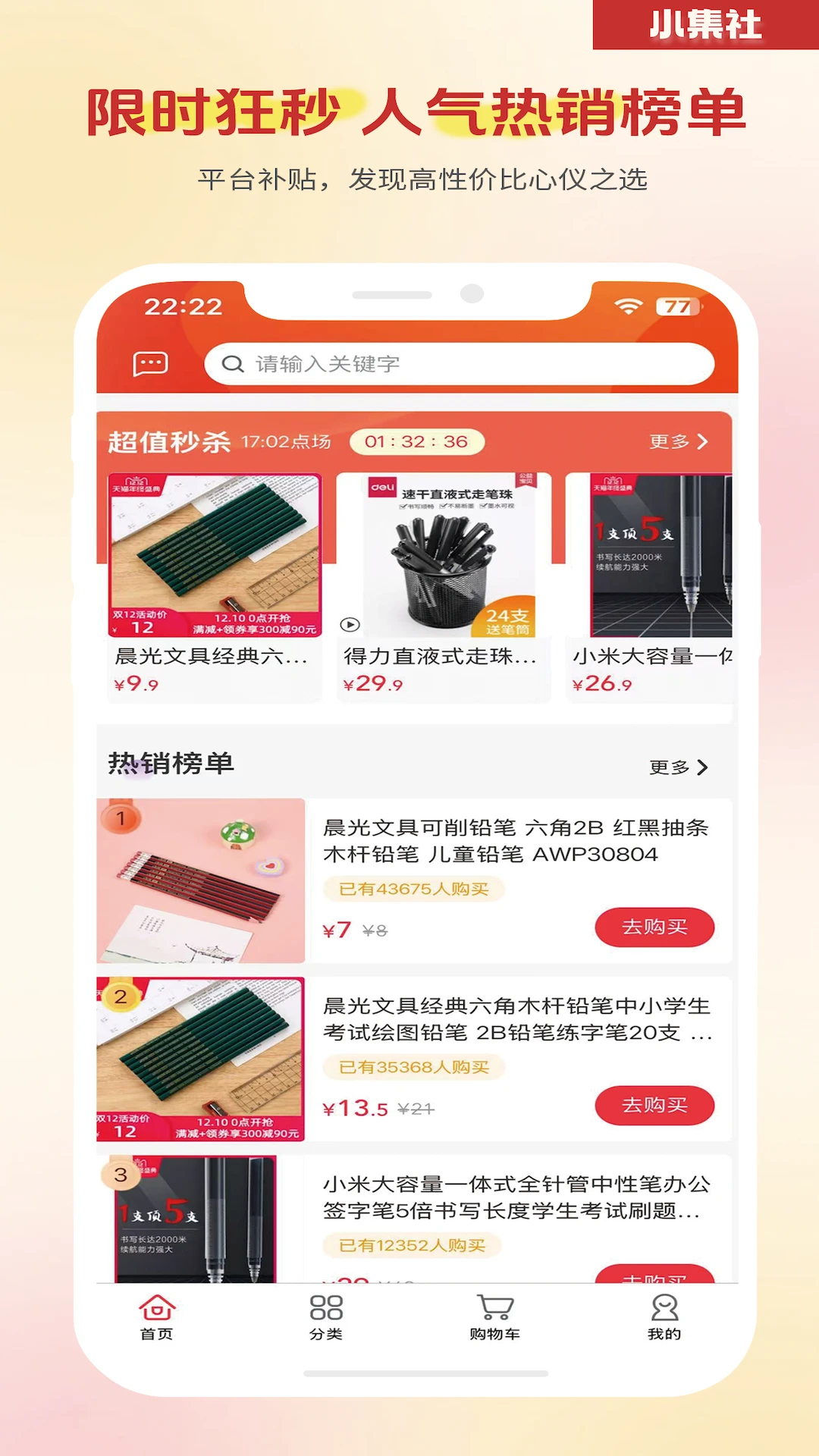 购物省钱功能:提供大牌商品最高50%的专享折扣,覆盖美妆、数码、家居等全品类
