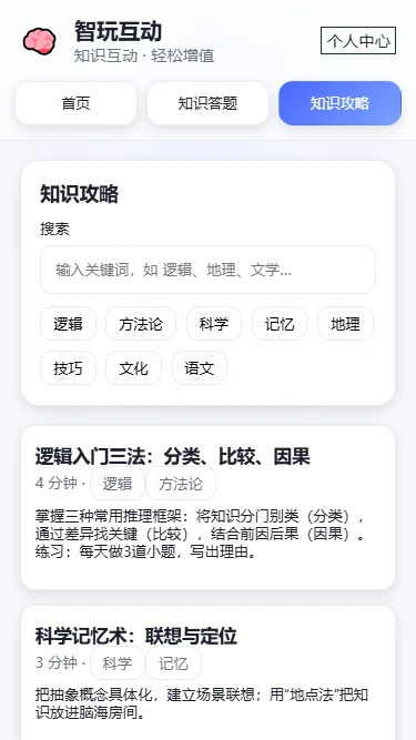 海量趣味问答挑战,覆盖百科、科技、生活冷知识,独家知识攻略深度解析难点,让学习增值更有趣!智玩互动,玩转知识,快乐学习!知识互动,轻松增值!
