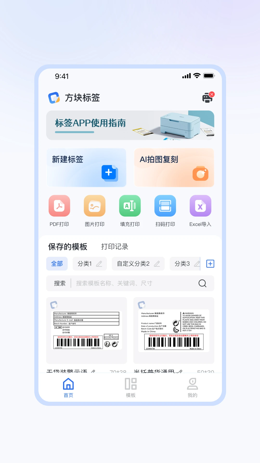 方块标签是一款功能强大的标签打印工具软件,为用户提供了便捷高效的标签设计与打印体验。它支持多种连接方式,包括蓝牙和WIFI,满足不同场景下的使用需求。无论是个人用户还是企业客户,都能通过方块标签轻松创建个性化的标签内容,插入文字、图片、条形码、二维码等多种素材,并利用丰富的云模板快速完成设计。此外,软件还支持PDF文档打印和图片打印,结合AI拍图识别功能,大幅提升了工作效率,减少了人工操作的繁琐步骤。