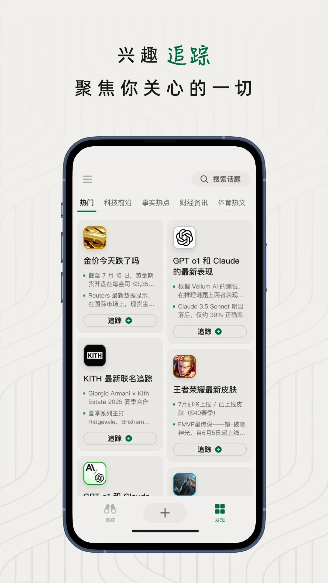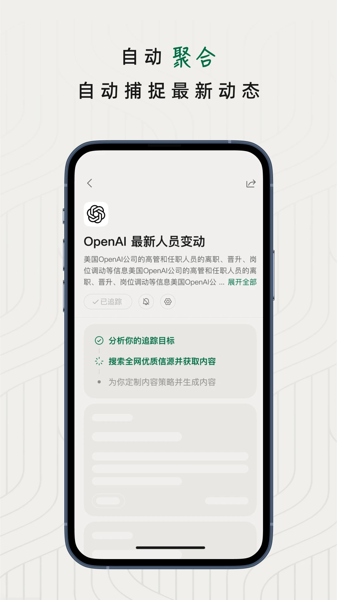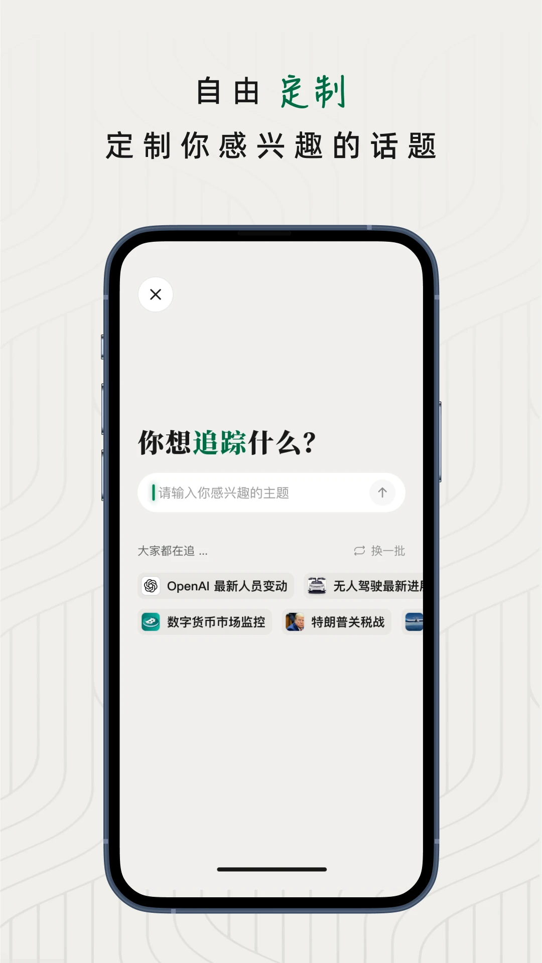 ●自定义追踪话题:输入你想看的话题,AI自动帮你追踪最新动态