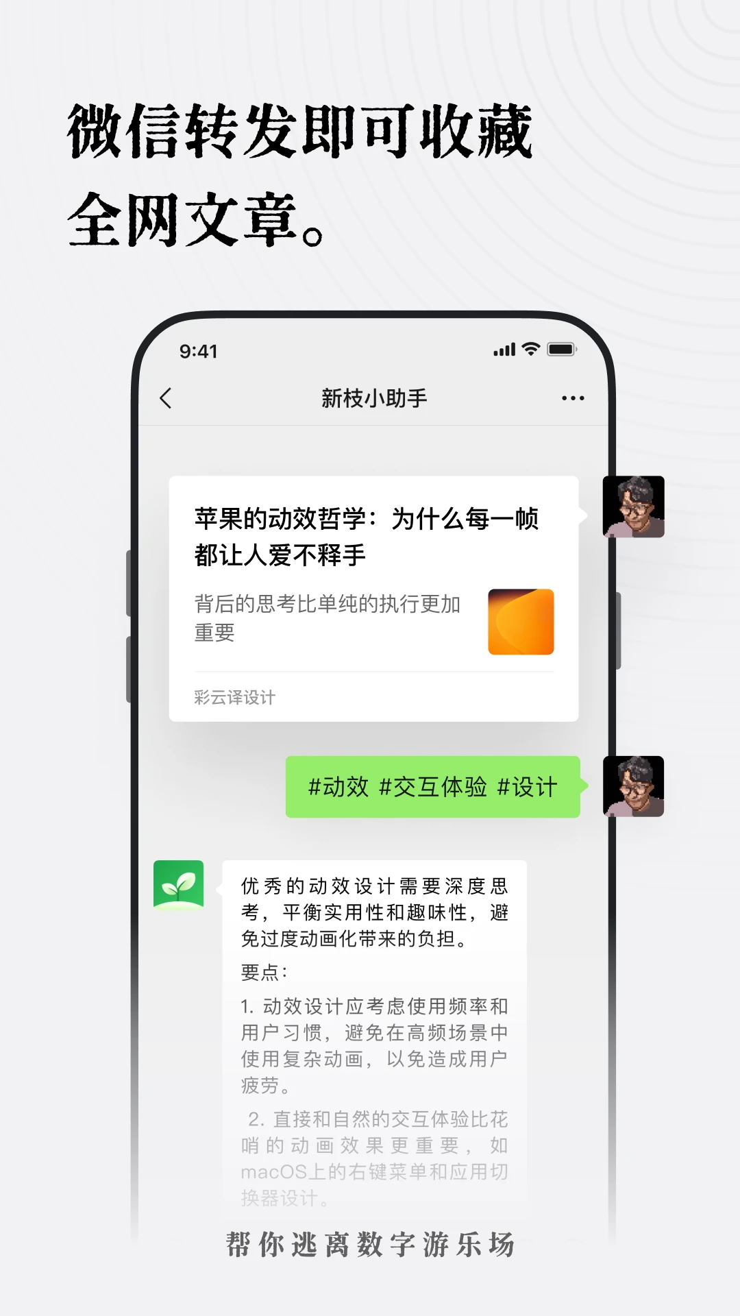 一款集Newsletter订阅、文章收藏、阅读批注、卡片笔记于一身的思考工具。你可以使用新枝:用多种方式收藏信息,包括但不限于: