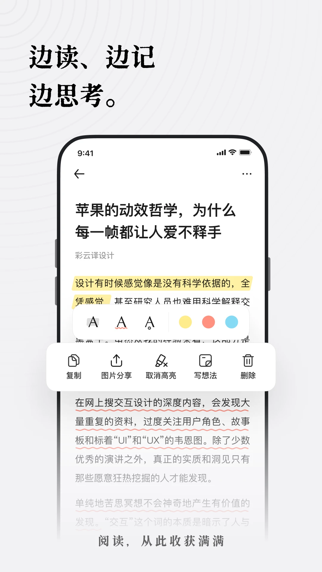 沉浸式阅读引擎:独家研发的排版引擎能智能优化任何网页内容,提供媲美电子书的阅读体验批注联动系统:高亮内容自动生成知识卡片,批注可转化为待办事项或写作素材,实现知识闭环