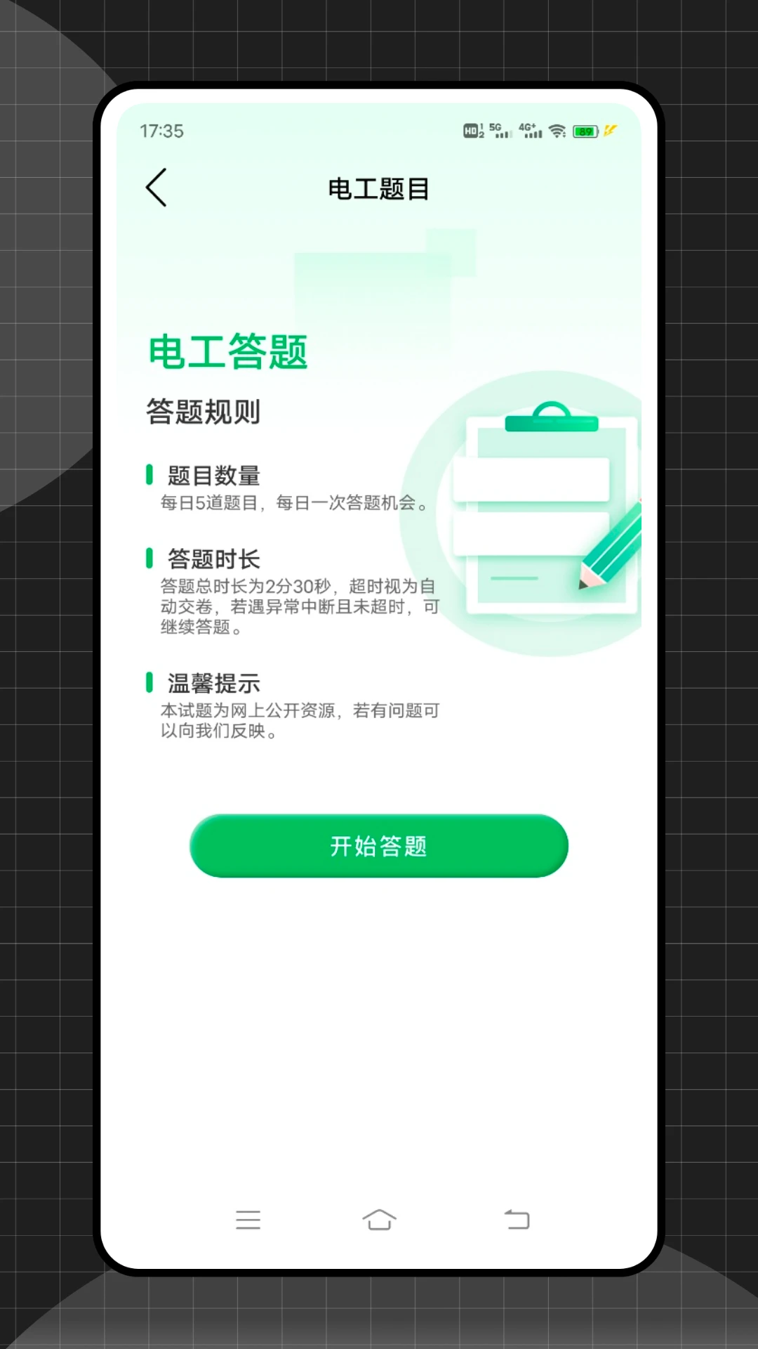 双题库学习系统:包含电工理论题库与机电安全题库,覆盖1000+专业知识点。