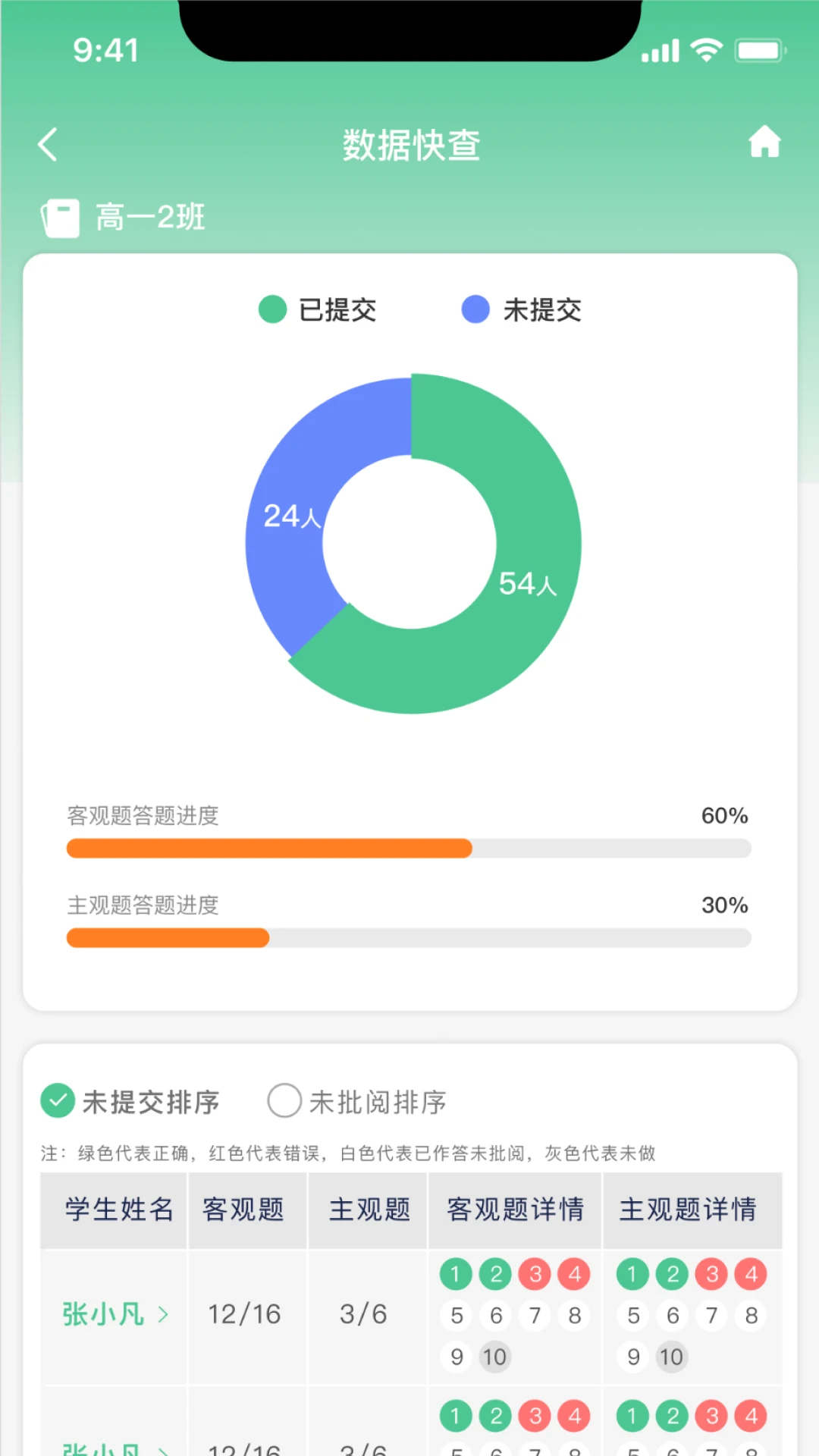 数据分析:系统自动统计作业完成情况、正确率等数据,生成可视化报告。