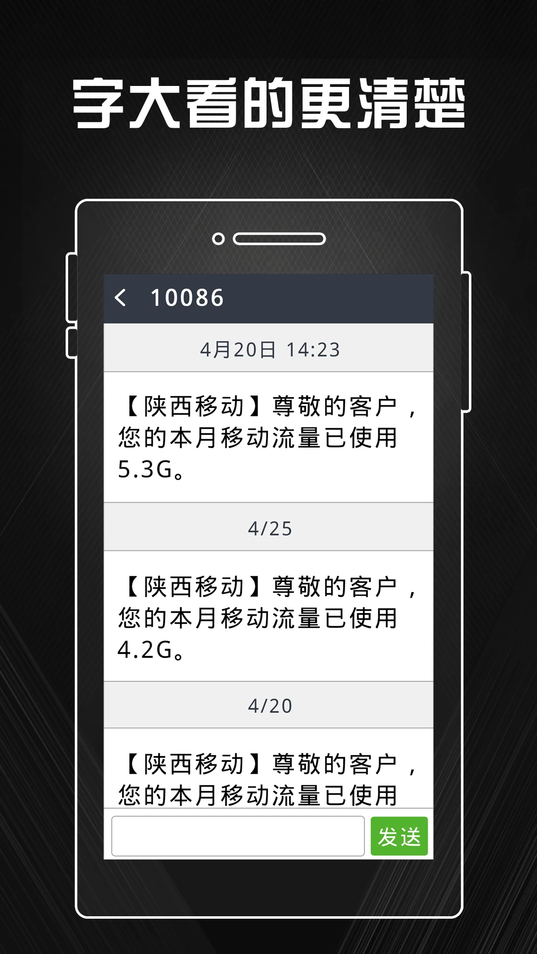 特大字体模式:所有文字放大200%,支持动态调整字号大小