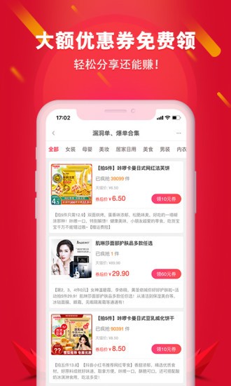 新注册用户可参与限时0元购活动,真实免费领取精选商品。同时还有新人专属大礼包,包含多张高额无门槛优惠券。