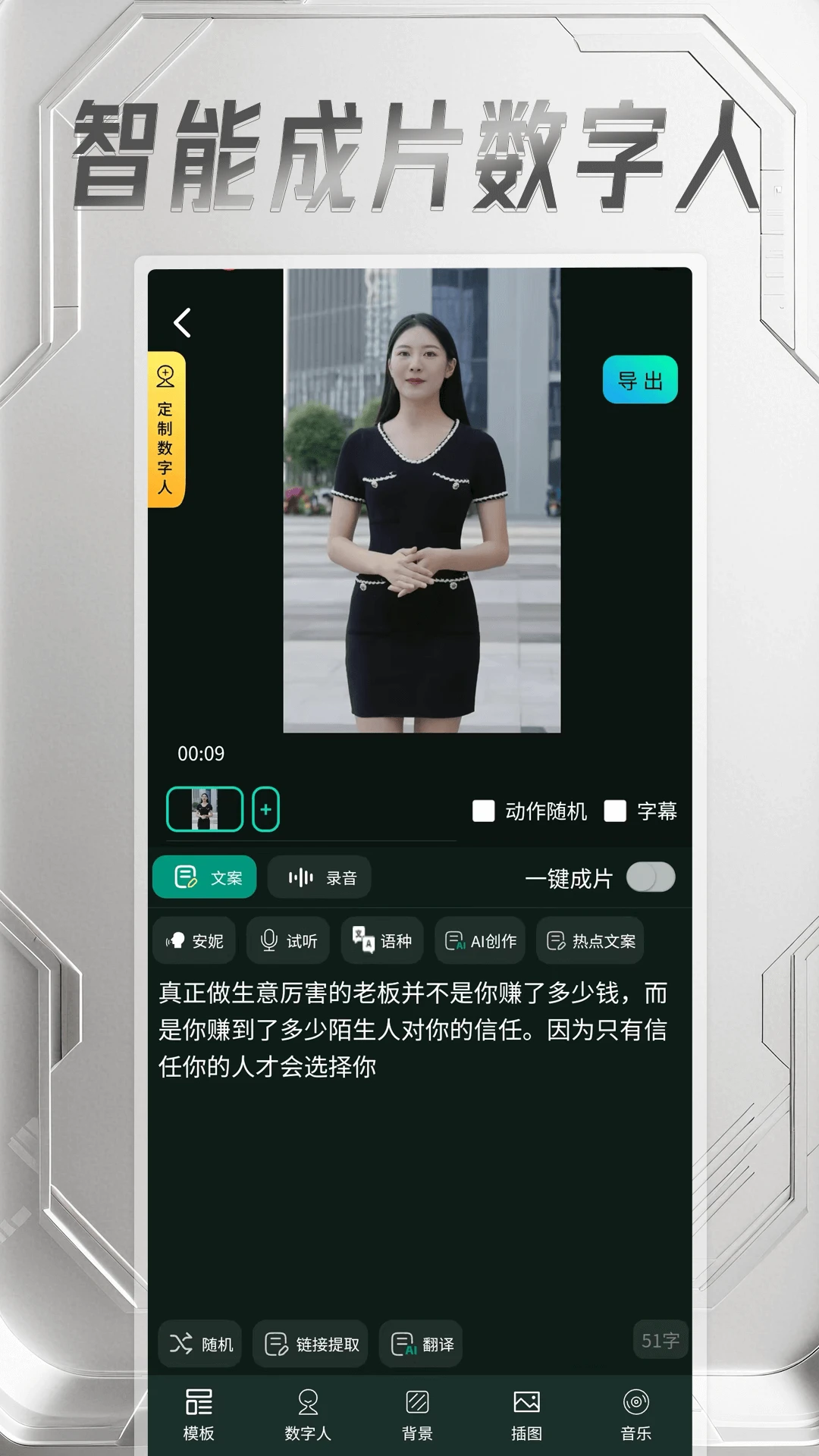 一键生成功能让数字人创建变得简单快捷,无需复杂操作即可获得理想效果。