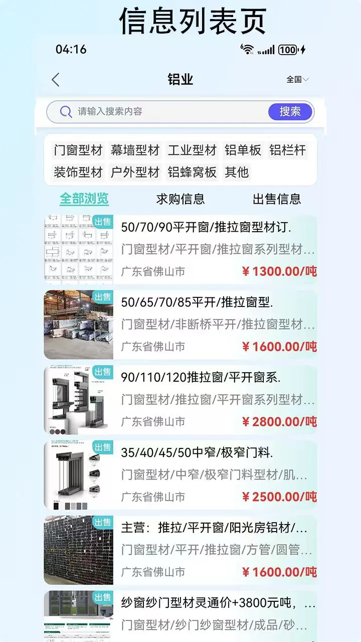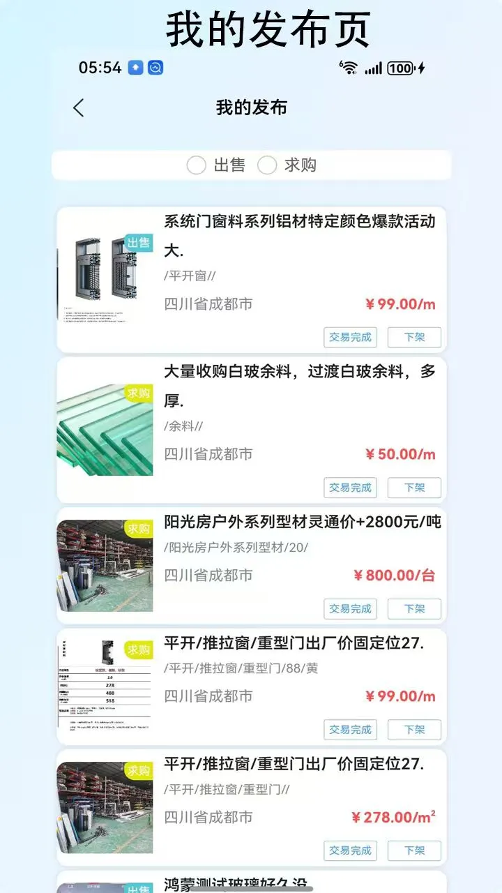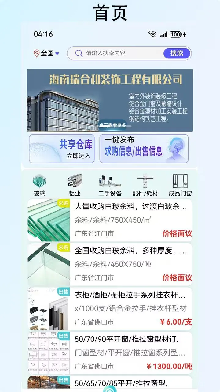 余货信息发布:用户可快速发布玻璃和铝业的余货、尾货及库存信息,实现高效交易匹配。