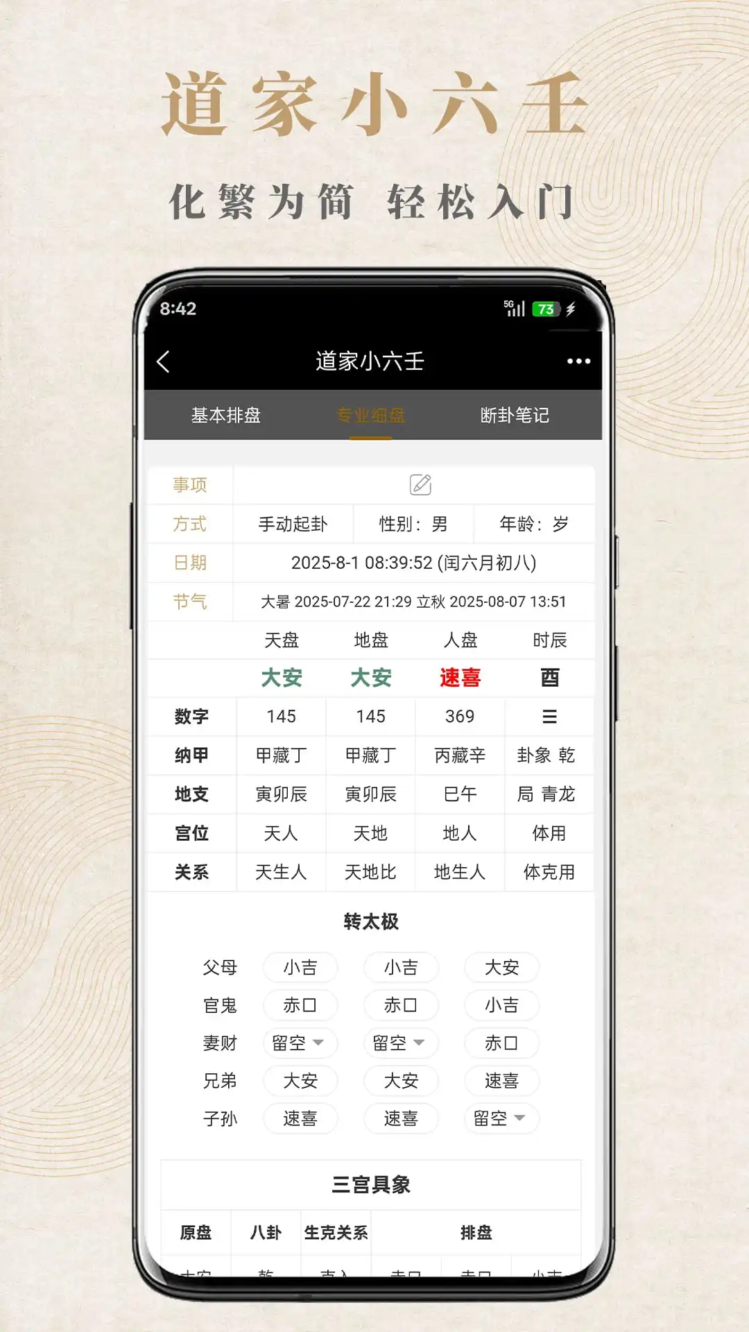 相比传统手工排盘,观吾排盘将复杂计算过程缩短至秒级